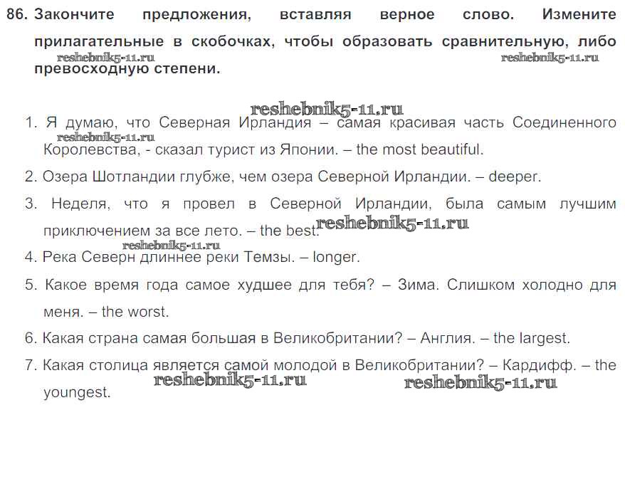 Готовая домашняя работа с ответами по Английскому языку за 6 класс Биболетова, Денисенко, Трубанева Учебник Enjoy English Титул 2015 ФГОС - Exercises 86