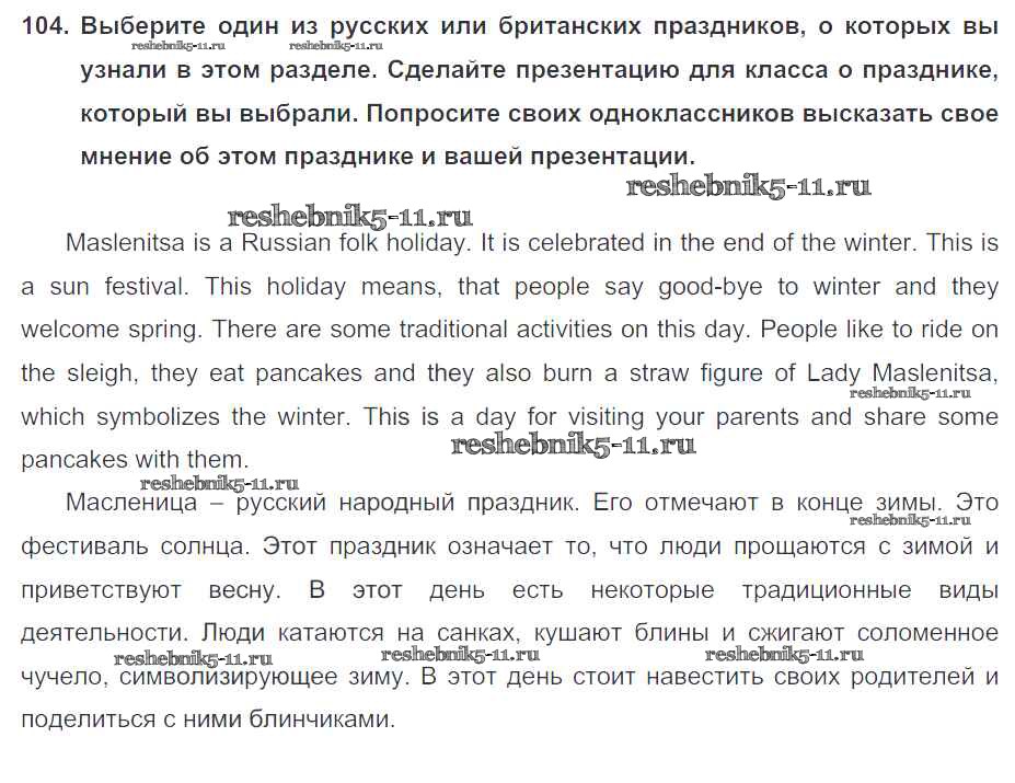 Решебник / учебник 2015 / unit 4 / exercise / 104