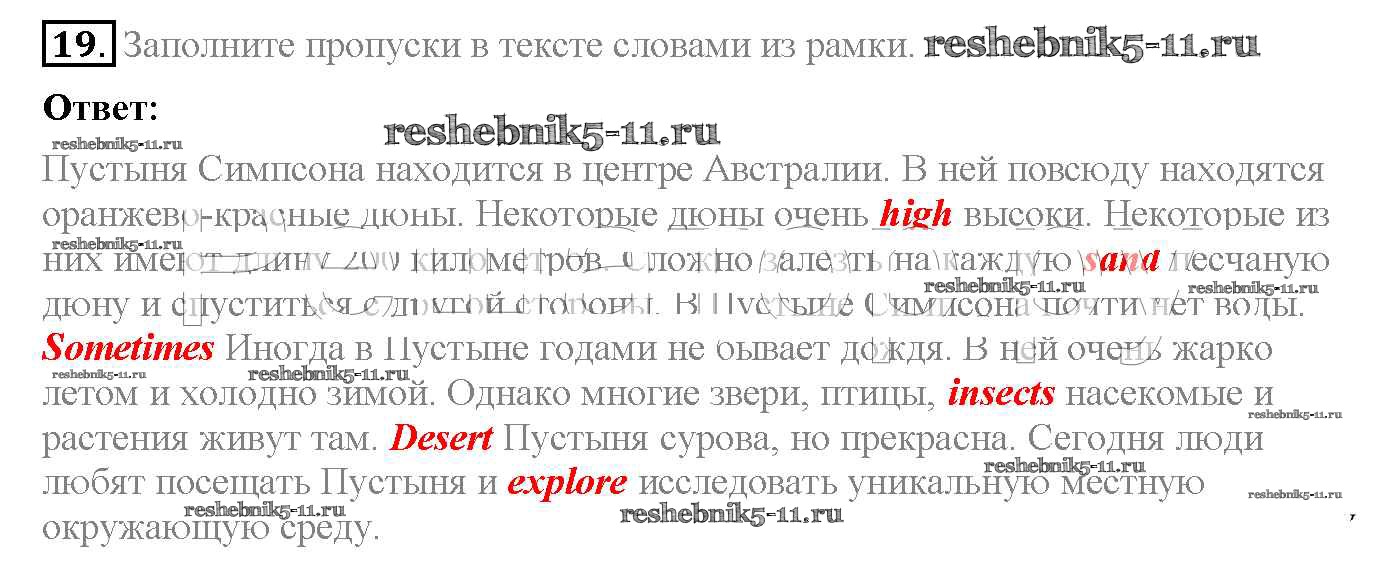 Готовая домашняя работа с ответами по Английскому языку за 6 класс Биболетова, Денисенко, Трубанева Рабочая тетрадь Enjoy English Дрофа 2019 ФГОС - Exercises 19