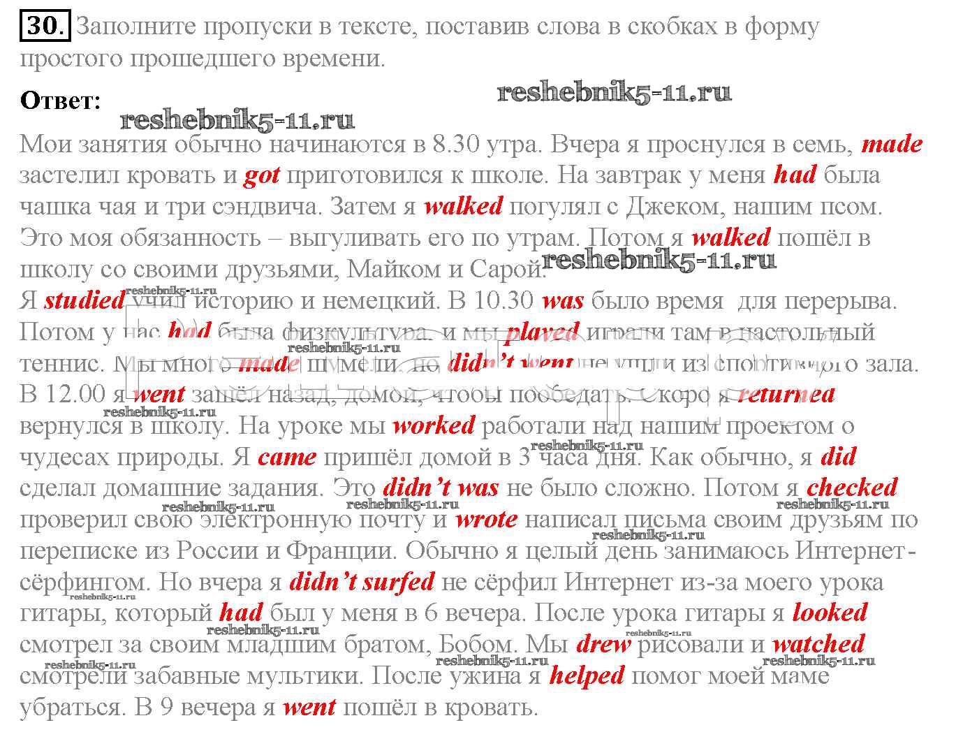 Готовая домашняя работа с ответами по Английскому языку за 6 класс Биболетова, Денисенко, Трубанева Рабочая тетрадь Enjoy English Дрофа 2019 ФГОС - Exercises 30