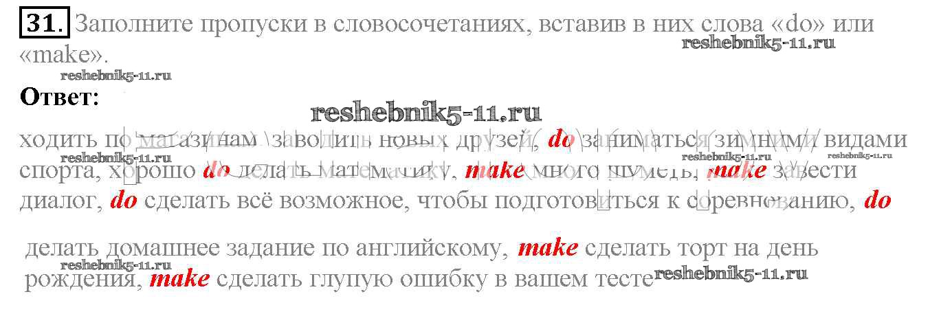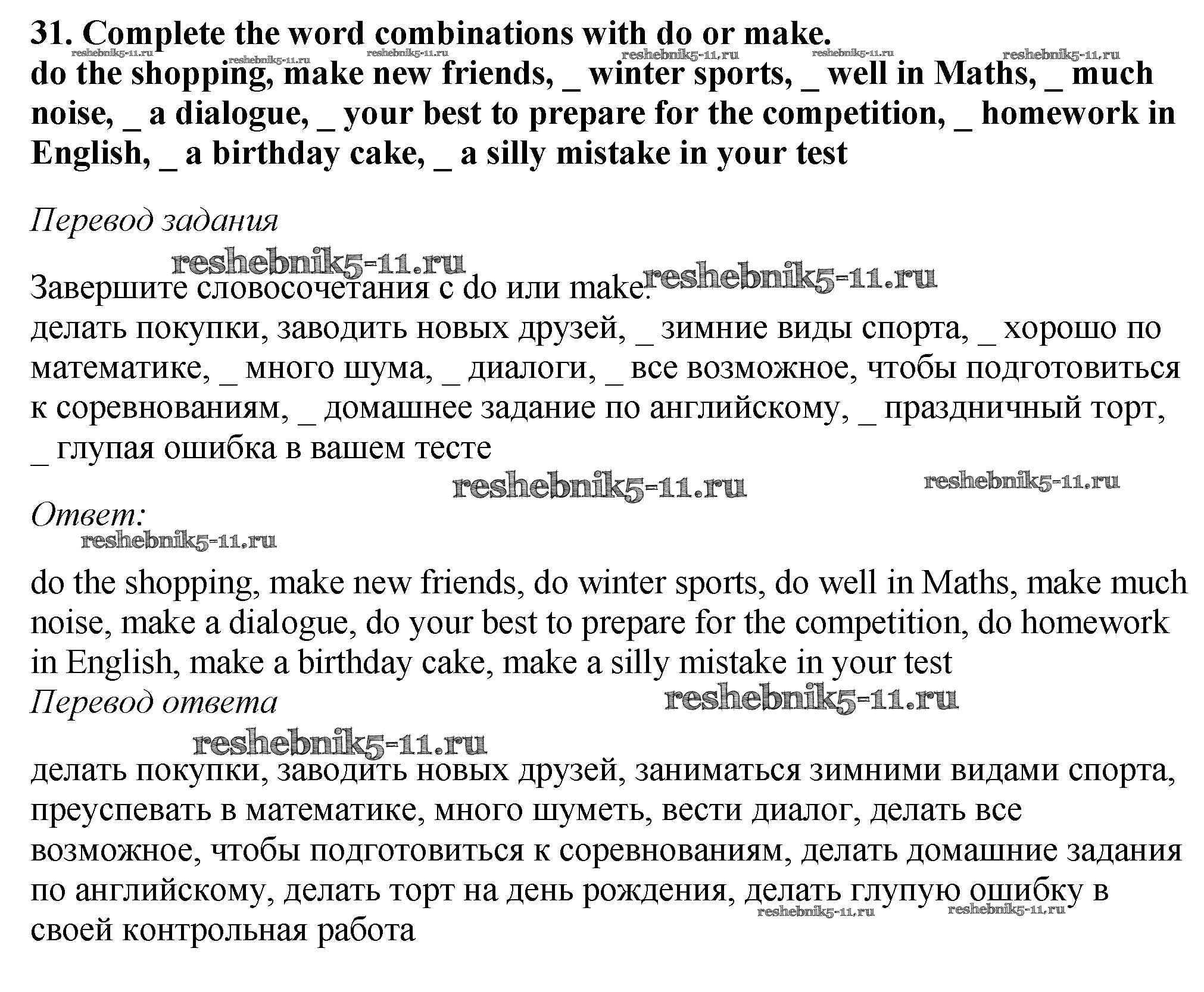 Готовая домашняя работа с ответами по Английскому языку за 6 класс Биболетова, Денисенко, Трубанева Рабочая тетрадь Enjoy English Дрофа 2019 ФГОС - Exercises 31