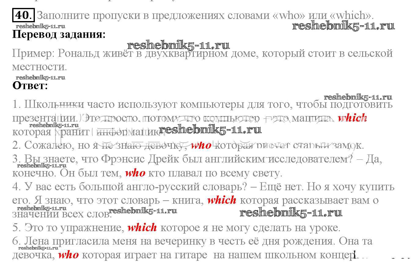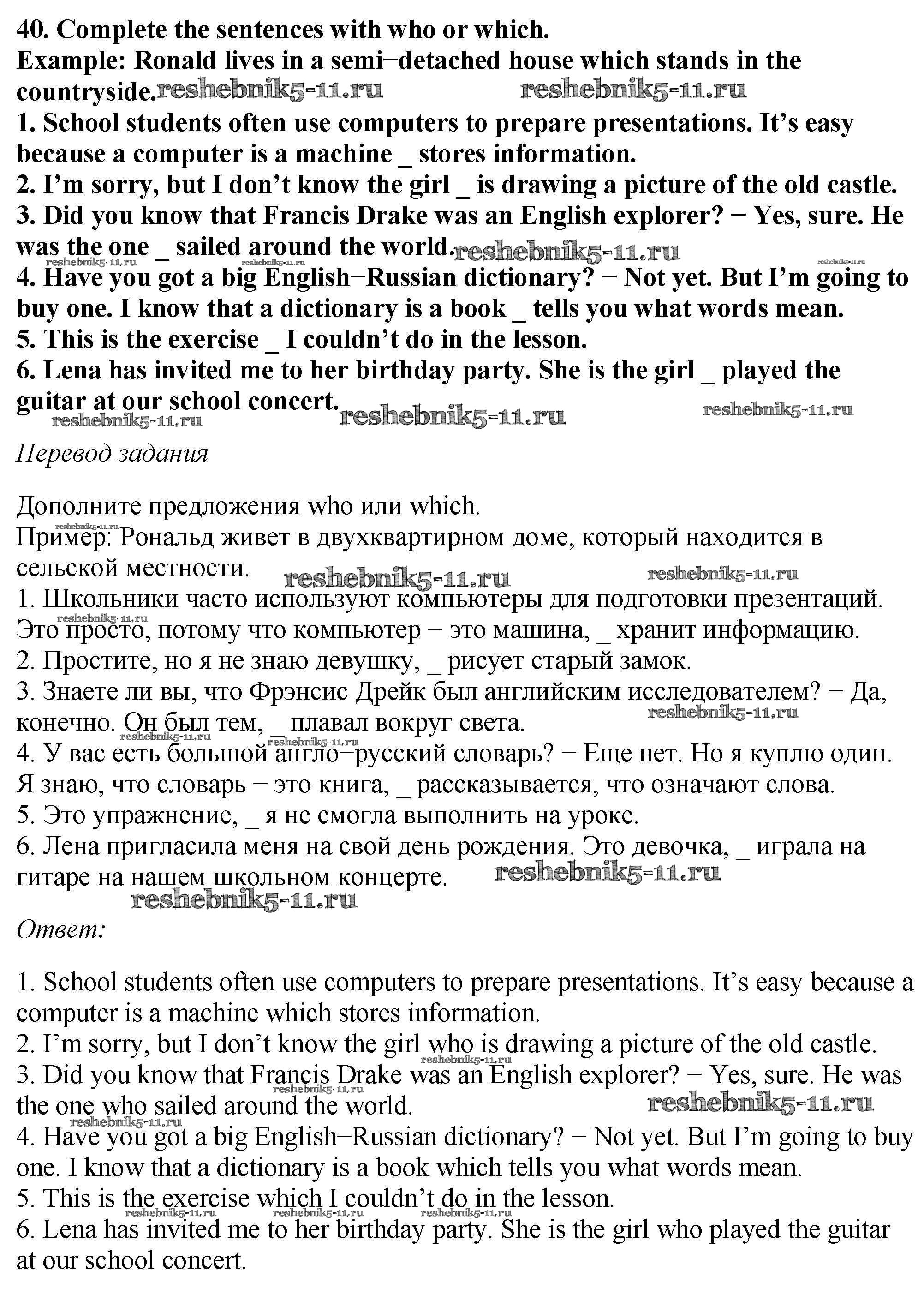 Готовая домашняя работа с ответами по Английскому языку за 6 класс Биболетова, Денисенко, Трубанева Рабочая тетрадь Enjoy English Дрофа 2019 ФГОС - Exercises 40
