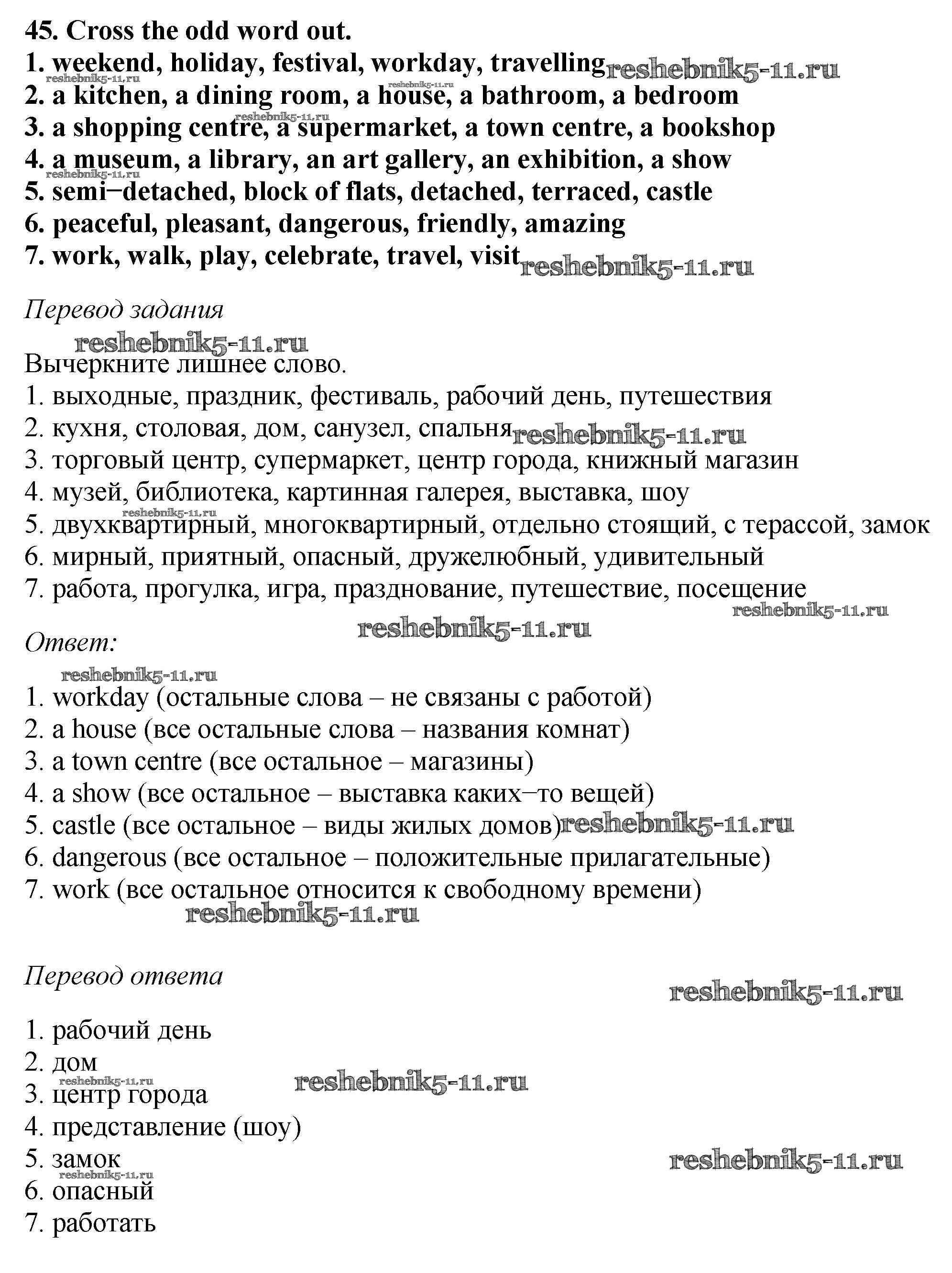Готовая домашняя работа с ответами по Английскому языку за 6 класс Биболетова, Денисенко, Трубанева Рабочая тетрадь Enjoy English Дрофа 2019 ФГОС - Exercises 45