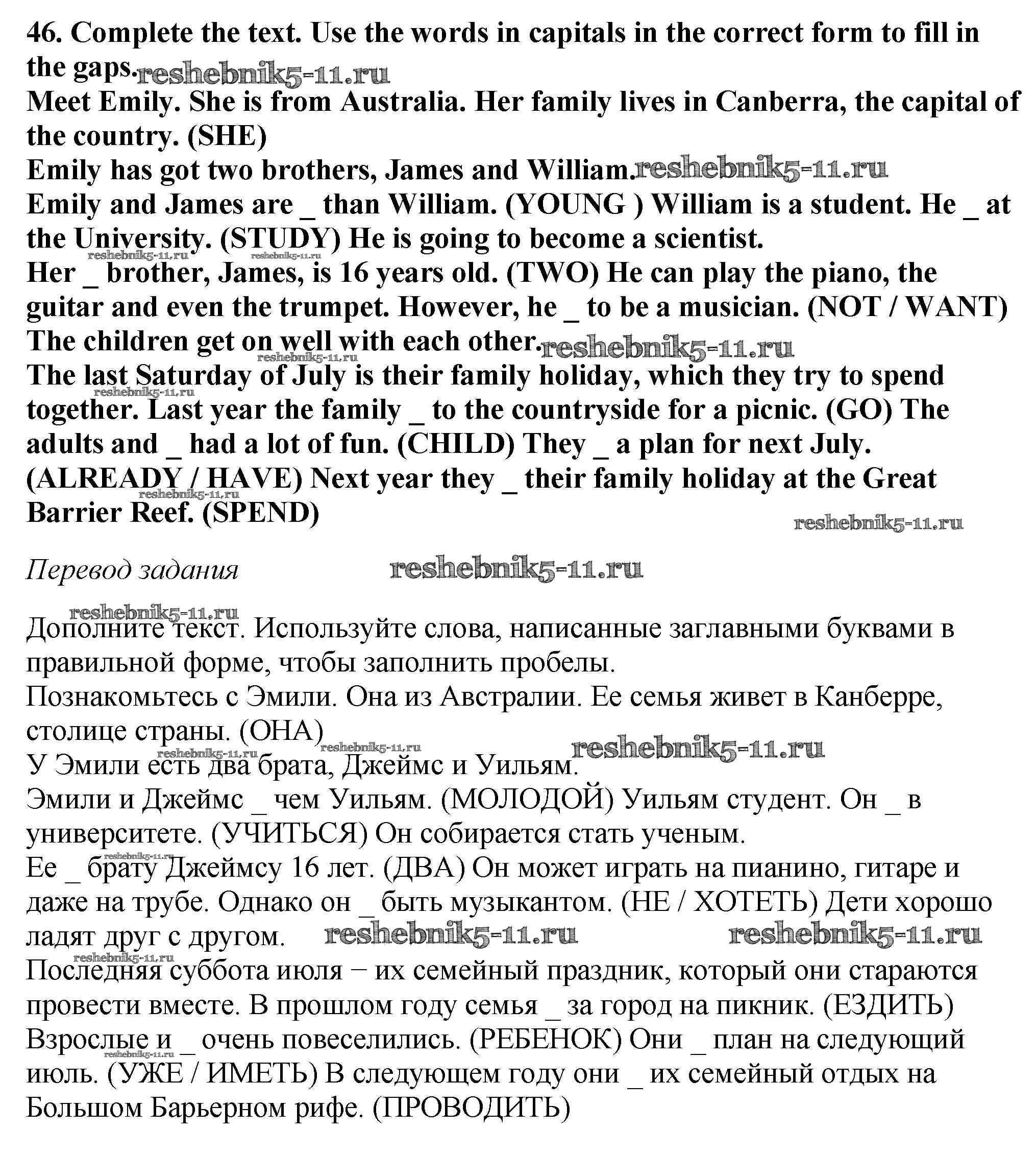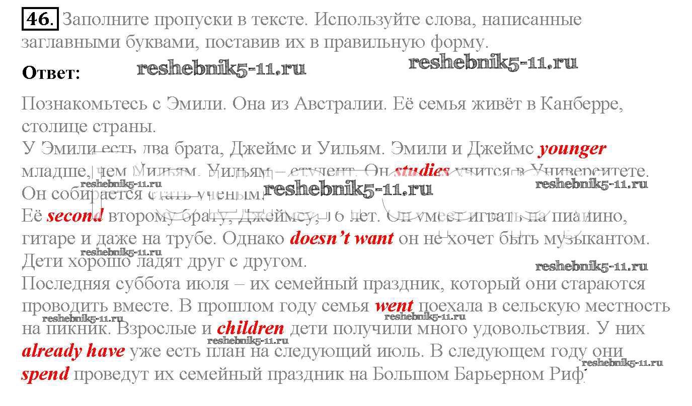 Готовая домашняя работа с ответами по Английскому языку за 6 класс Биболетова, Денисенко, Трубанева Рабочая тетрадь Enjoy English Дрофа 2019 ФГОС - Exercises 46