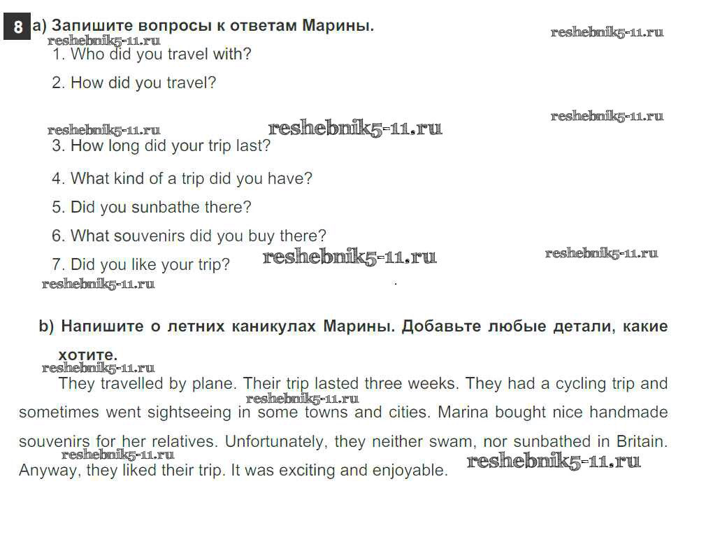 Готовая домашняя работа с ответами по Английскому языку за 6 класс Биболетова, Денисенко, Трубанева Рабочая тетрадь Enjoy English Дрофа 2019 ФГОС - Exercises 8