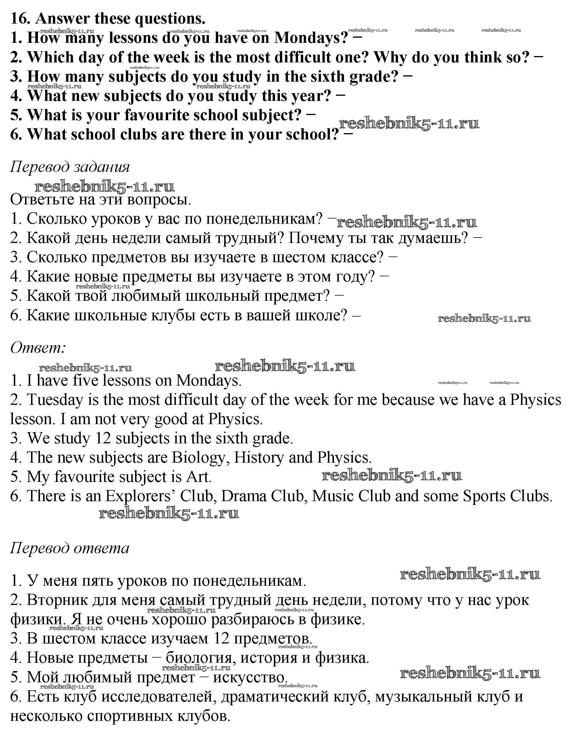 Готовая домашняя работа с ответами по Английскому языку за 6 класс Биболетова, Денисенко, Трубанева Рабочая тетрадь Enjoy English Дрофа 2019 ФГОС - Exercises 16