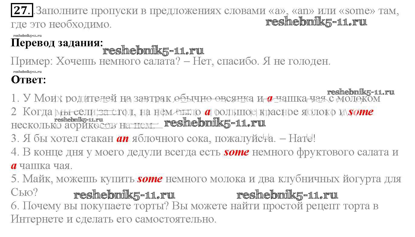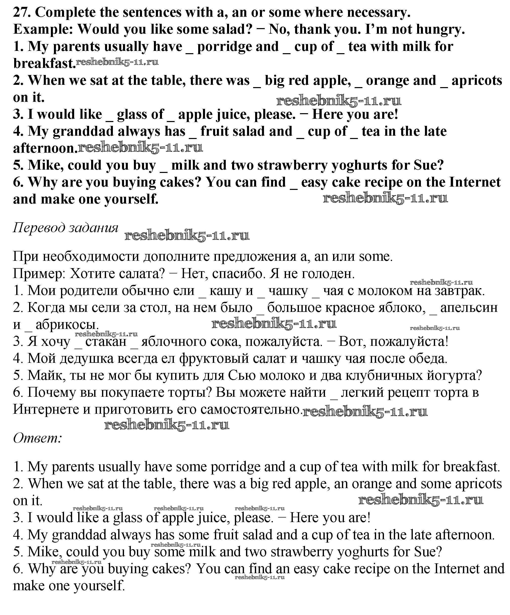 Готовая домашняя работа с ответами по Английскому языку за 6 класс Биболетова, Денисенко, Трубанева Рабочая тетрадь Enjoy English Дрофа 2019 ФГОС - Exercises 27