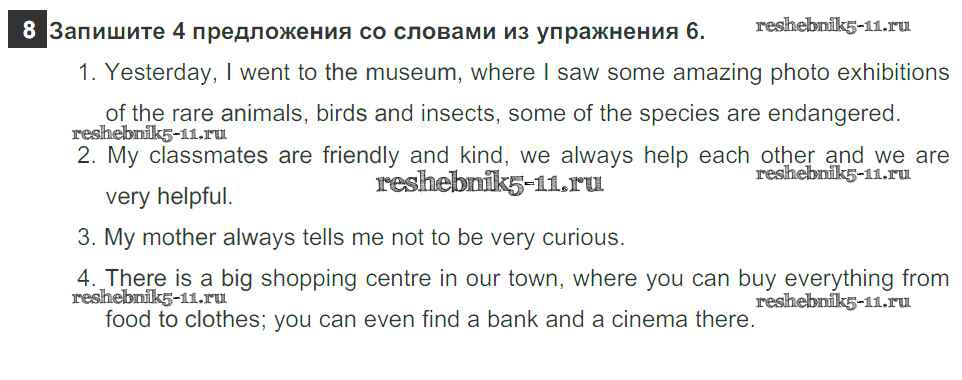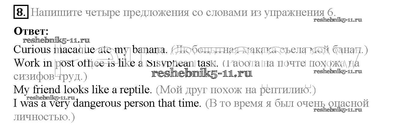 Готовая домашняя работа с ответами по Английскому языку за 6 класс Биболетова, Денисенко, Трубанева Рабочая тетрадь Enjoy English Дрофа 2019 ФГОС - Exercises 8