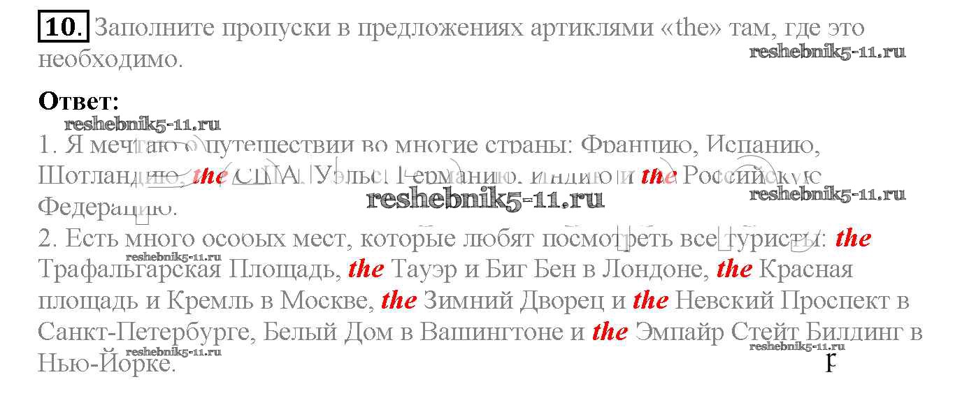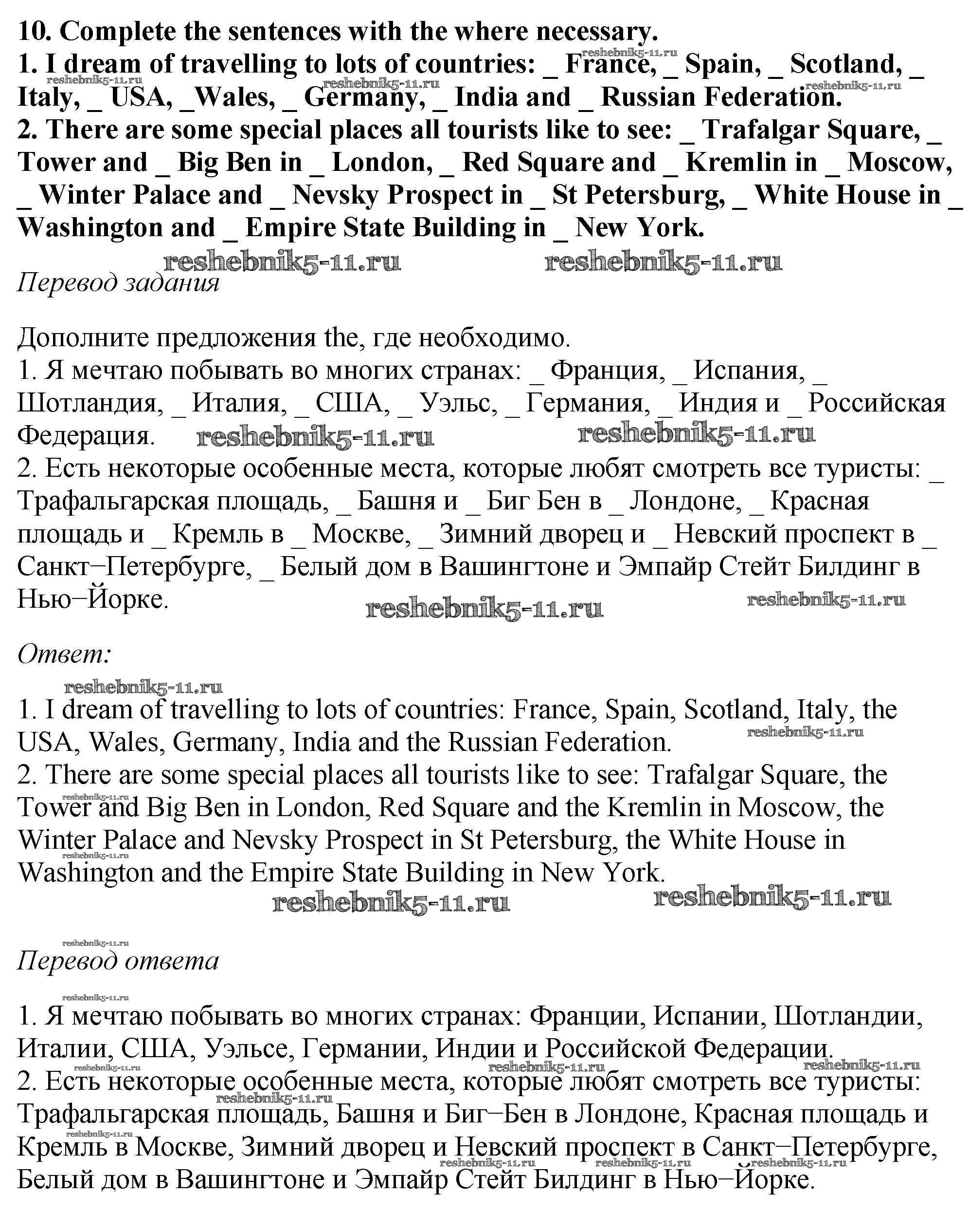 Готовая домашняя работа с ответами по Английскому языку за 6 класс Биболетова, Денисенко, Трубанева Рабочая тетрадь Enjoy English Дрофа 2019 ФГОС - Exercises 10