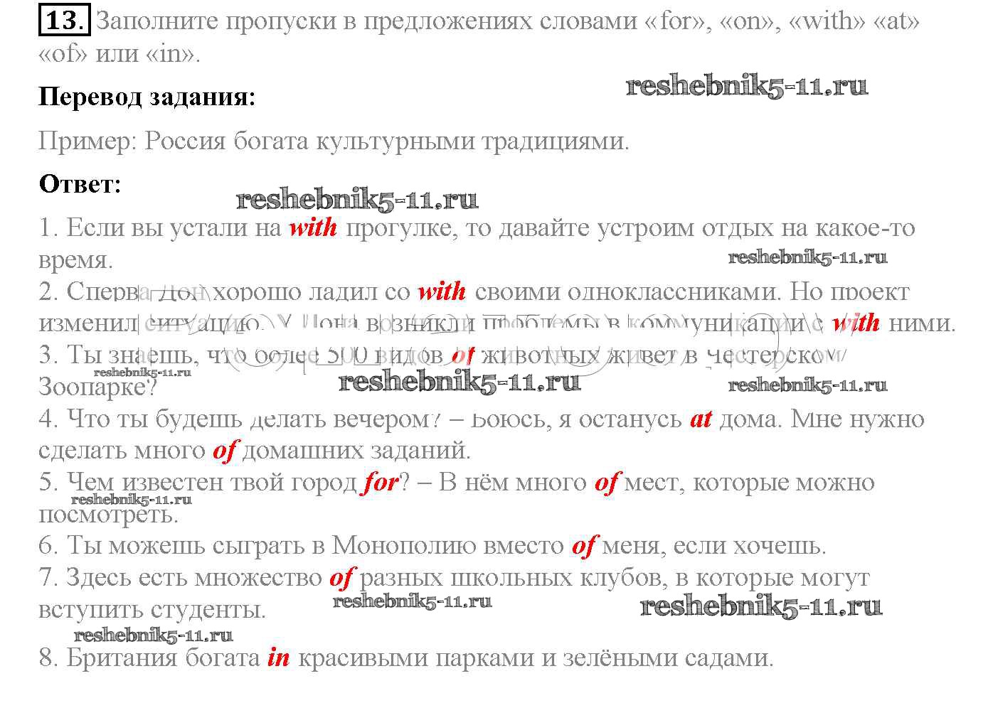 Готовая домашняя работа с ответами по Английскому языку за 6 класс Биболетова, Денисенко, Трубанева Рабочая тетрадь Enjoy English Дрофа 2019 ФГОС - Exercises 13