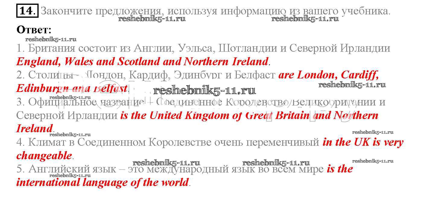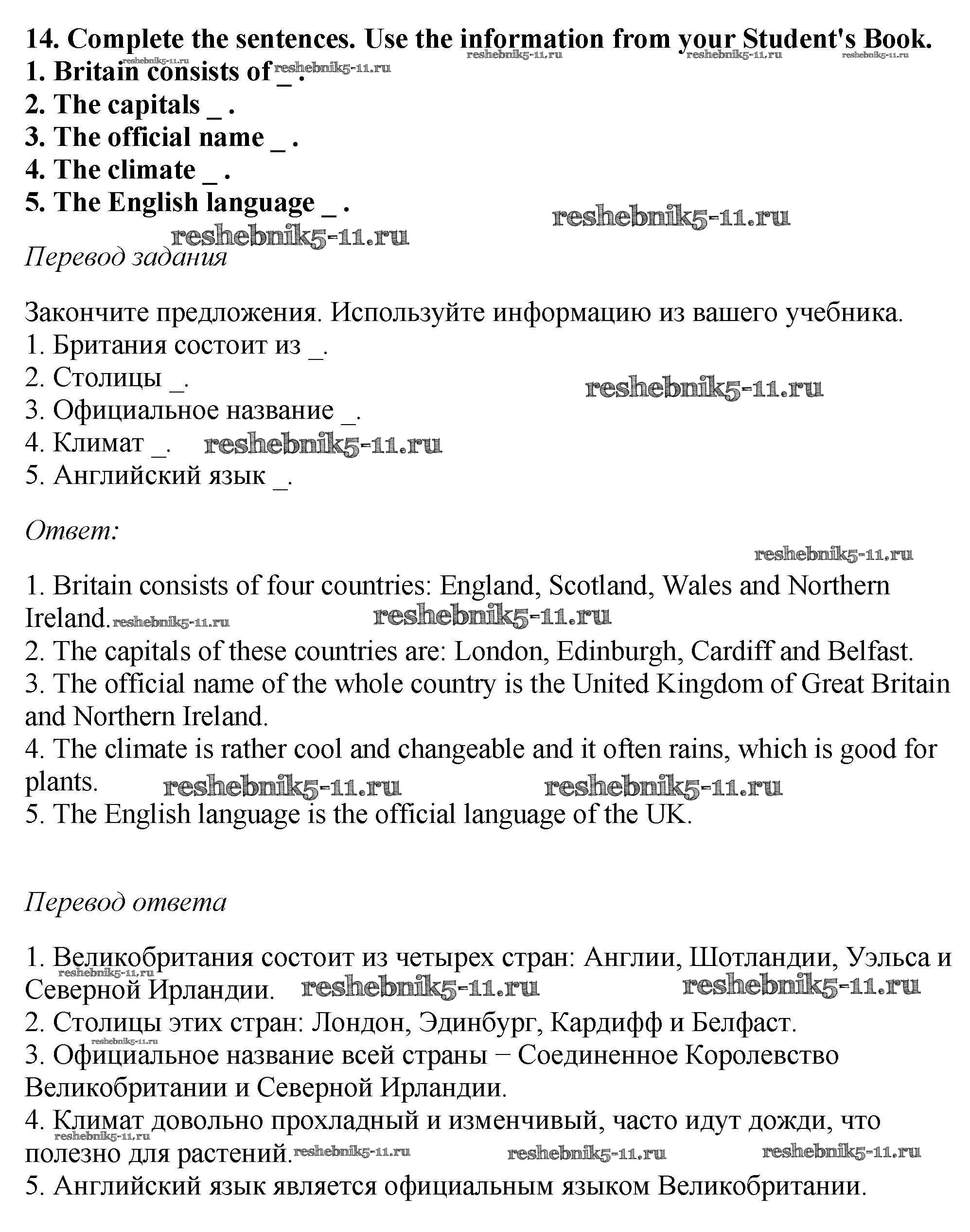 Готовая домашняя работа с ответами по Английскому языку за 6 класс Биболетова, Денисенко, Трубанева Рабочая тетрадь Enjoy English Дрофа 2019 ФГОС - Exercises 14