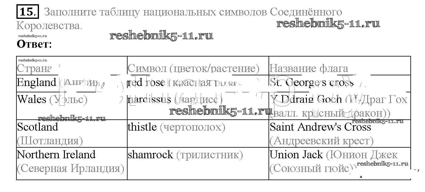 Готовая домашняя работа с ответами по Английскому языку за 6 класс Биболетова, Денисенко, Трубанева Рабочая тетрадь Enjoy English Дрофа 2019 ФГОС - Exercises 15