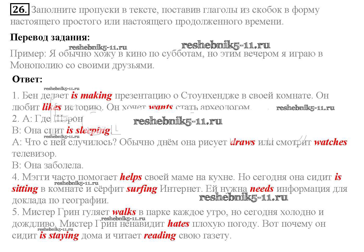 Готовая домашняя работа с ответами по Английскому языку за 6 класс Биболетова, Денисенко, Трубанева Рабочая тетрадь Enjoy English Дрофа 2019 ФГОС - Exercises 26