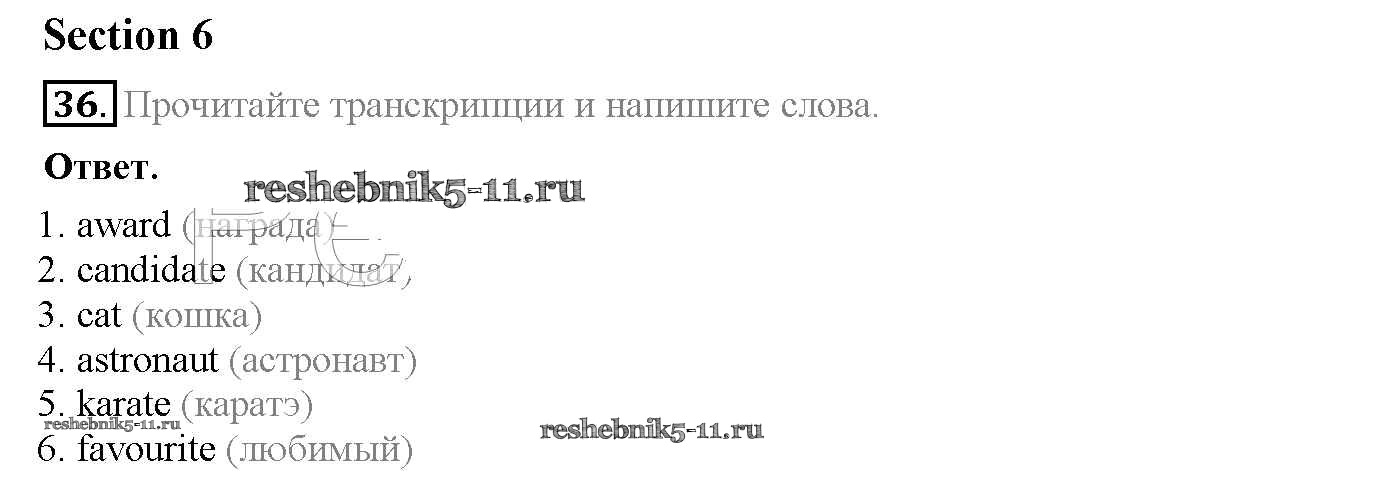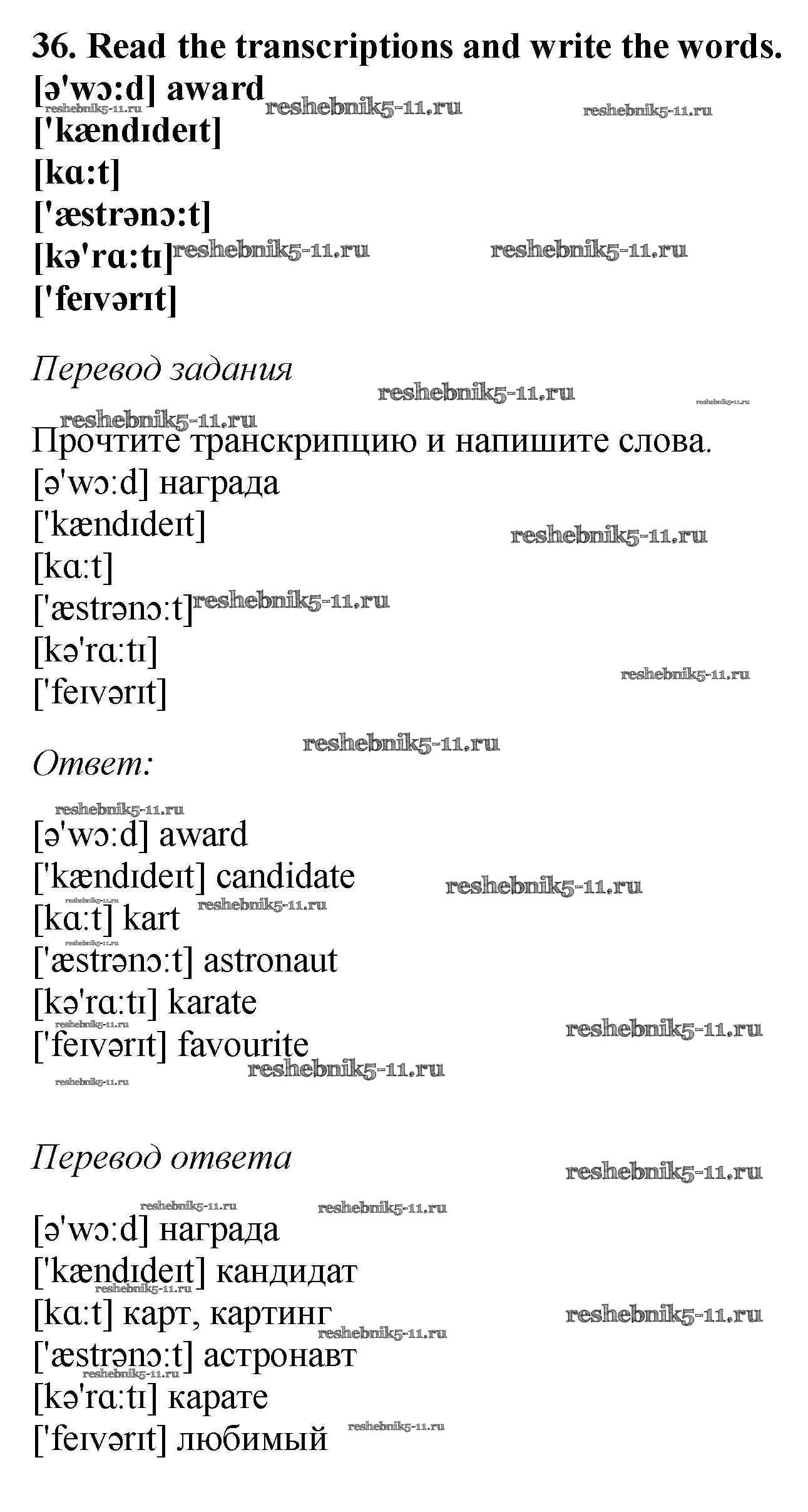 Готовая домашняя работа с ответами по Английскому языку за 6 класс Биболетова, Денисенко, Трубанева Рабочая тетрадь Enjoy English Дрофа 2019 ФГОС - Exercises 36
