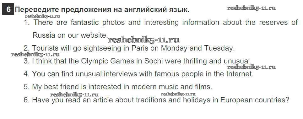 Английский язык за 6 класс Биболетова Рабочая тетрадь Enjoy English Дрофа exercise 6