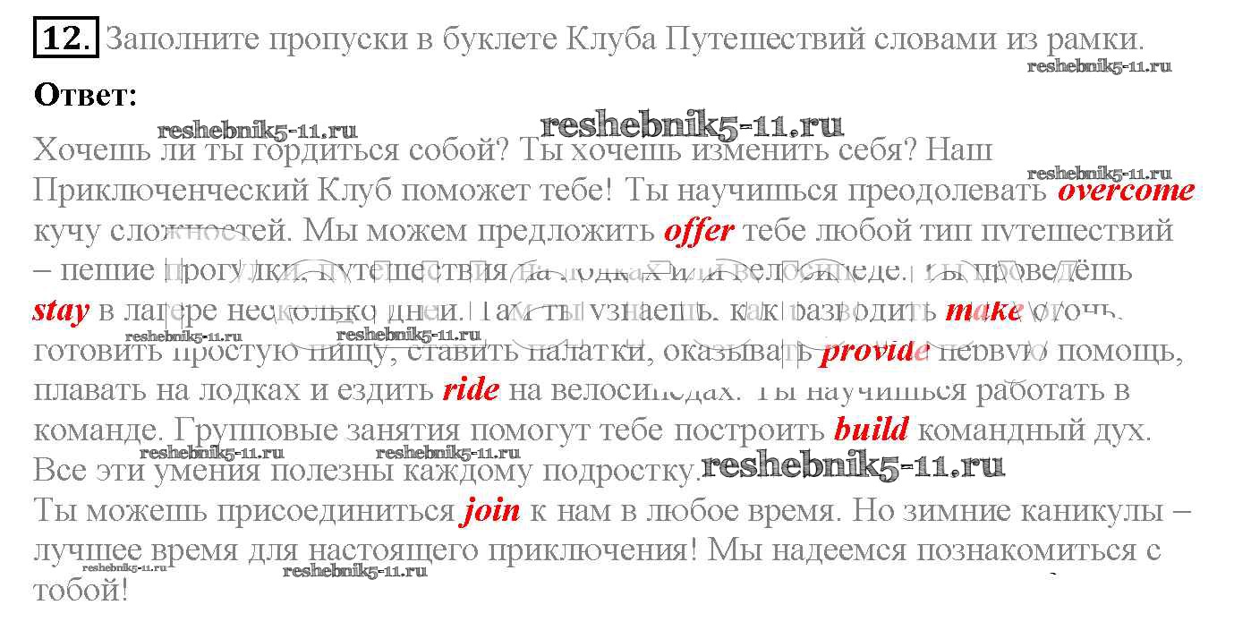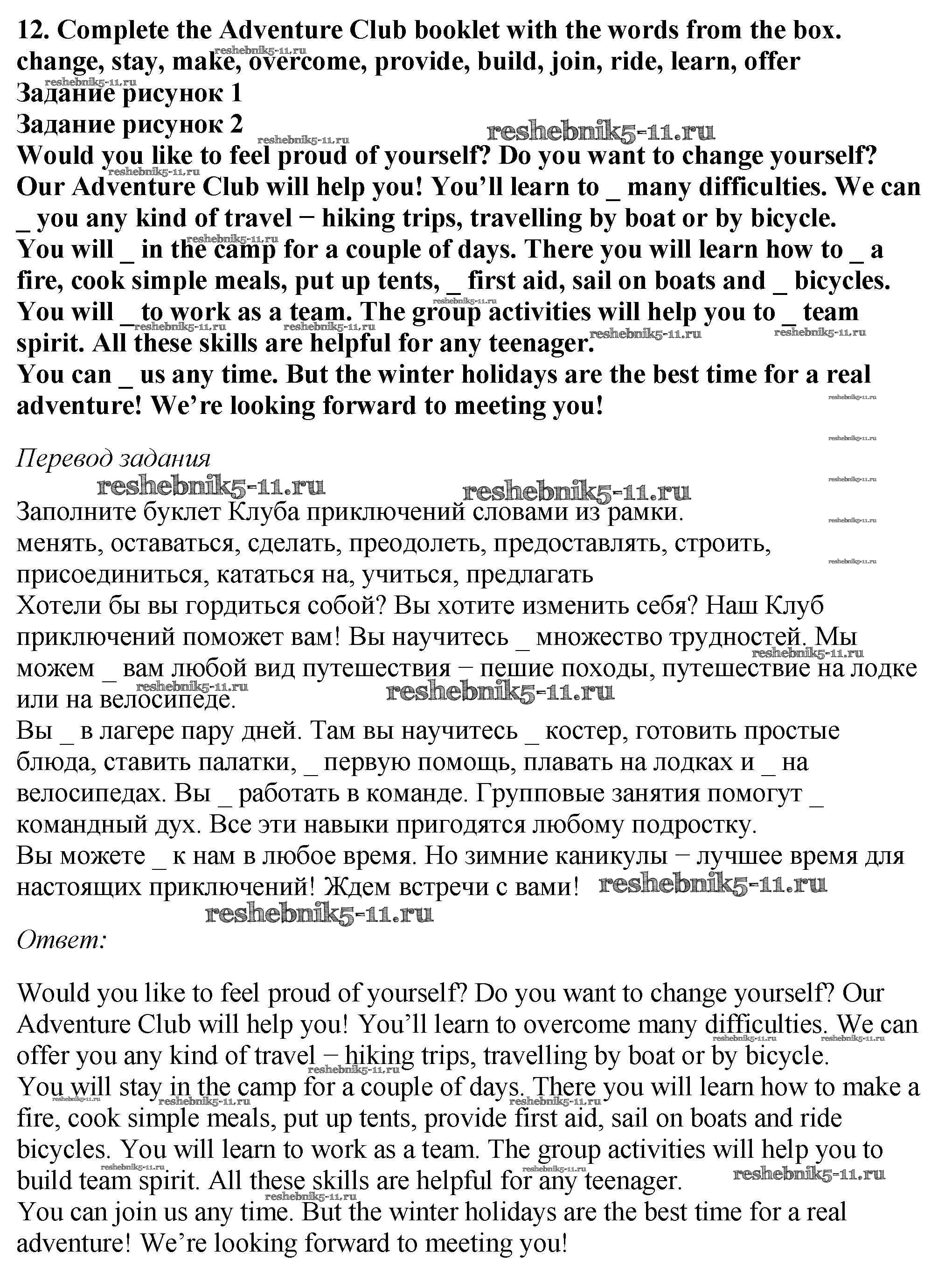 Готовая домашняя работа с ответами по Английскому языку за 6 класс Биболетова, Денисенко, Трубанева Рабочая тетрадь Enjoy English Дрофа 2019 ФГОС - Exercises 12