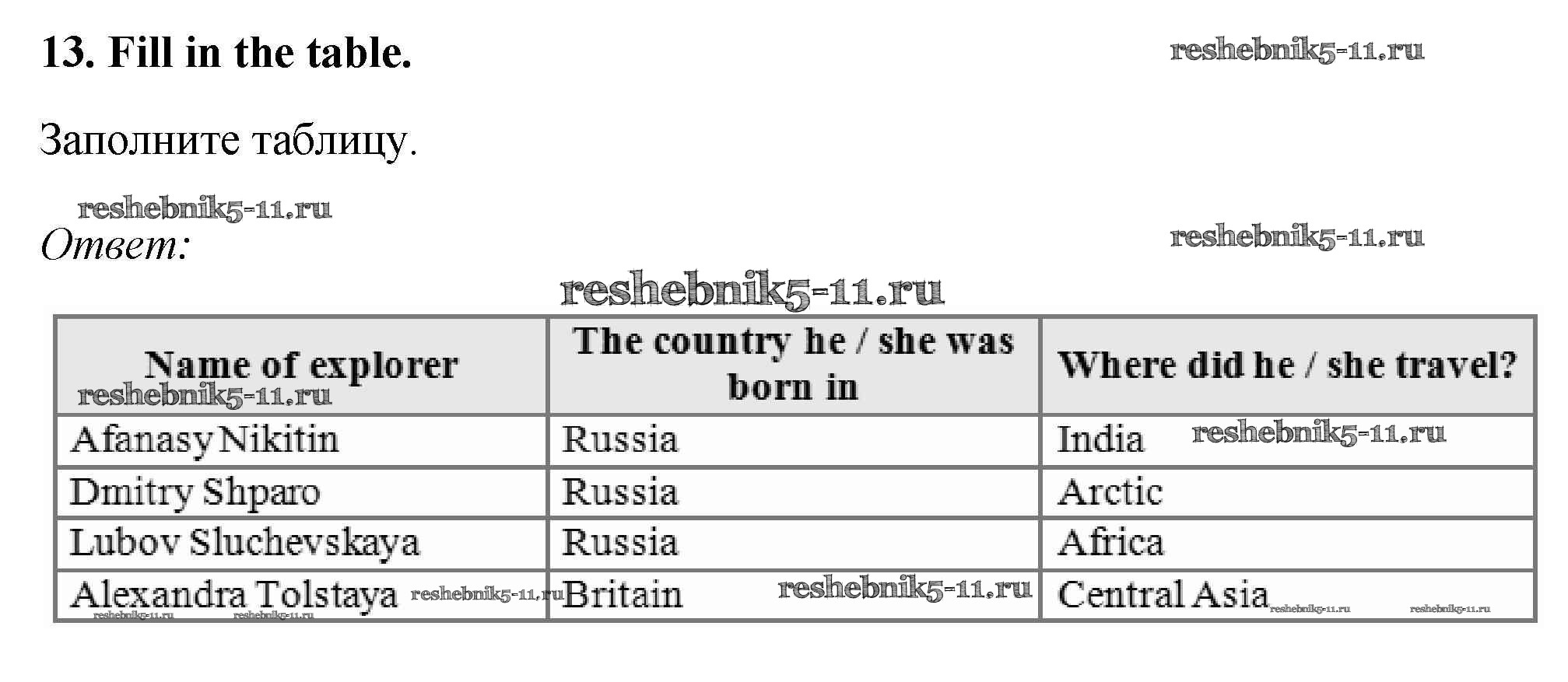 Готовая домашняя работа с ответами по Английскому языку за 6 класс Биболетова, Денисенко, Трубанева Рабочая тетрадь Enjoy English Дрофа 2019 ФГОС - Exercises 13
