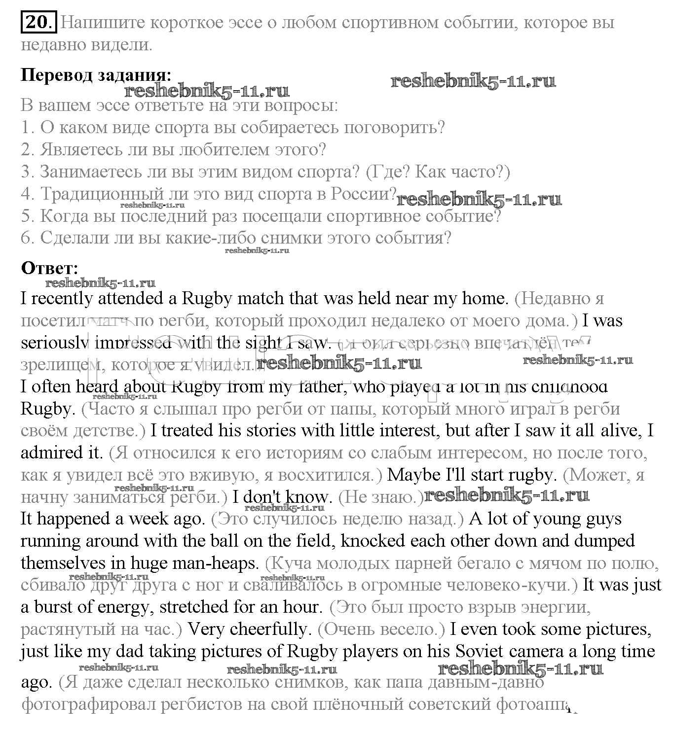 Готовая домашняя работа с ответами по Английскому языку за 6 класс Биболетова, Денисенко, Трубанева Рабочая тетрадь Enjoy English Дрофа 2019 ФГОС - Exercises 20