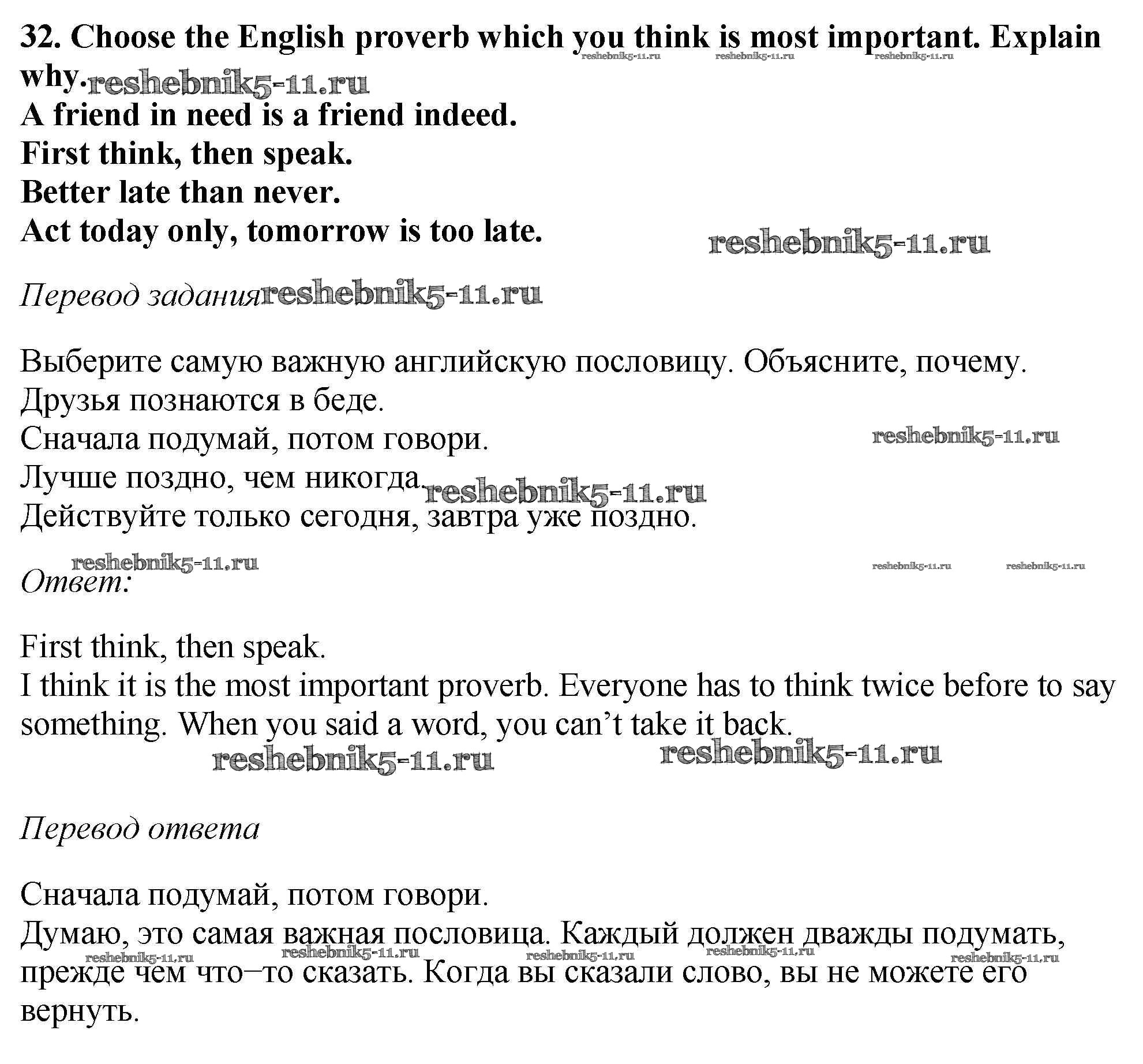 Готовая домашняя работа с ответами по Английскому языку за 6 класс Биболетова, Денисенко, Трубанева Рабочая тетрадь Enjoy English Дрофа 2019 ФГОС - Exercises 32