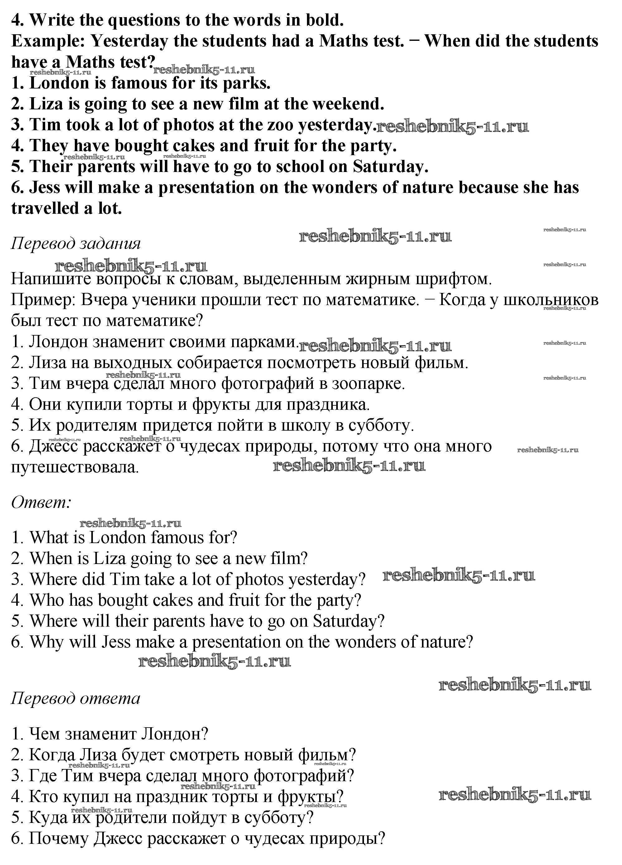 Готовая домашняя работа с ответами по Английскому языку за 6 класс Биболетова, Денисенко, Трубанева Рабочая тетрадь Enjoy English Дрофа 2019 ФГОС - Unit 2 4