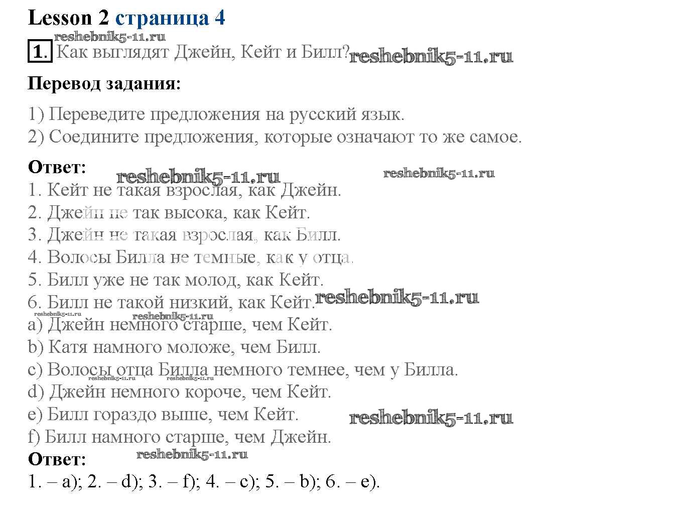 Готовая домашняя работа с ответами по Английскому языку за 6 класс Кузовлев, Лапа, Перегудова Рабочая тетрадь Просвещение 2015 ФГОС - Lesson 2 4