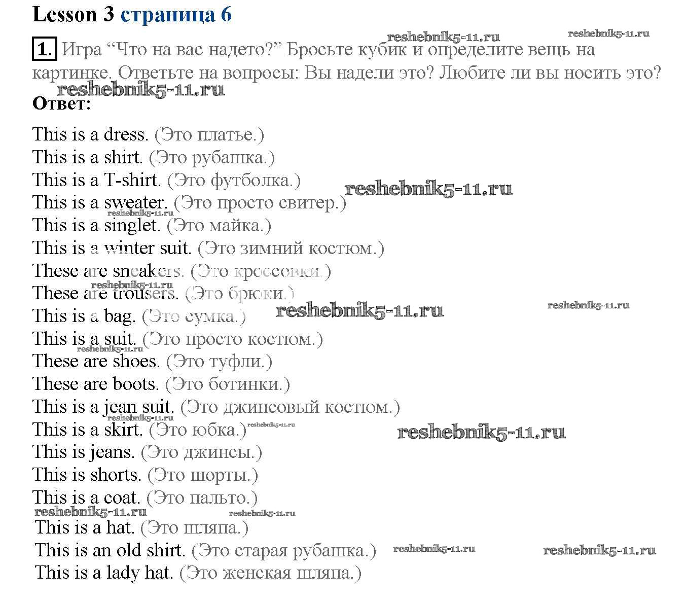 Готовая домашняя работа с ответами по Английскому языку за 6 класс Кузовлев, Лапа, Перегудова Рабочая тетрадь Просвещение 2015 ФГОС - Lesson 3 6