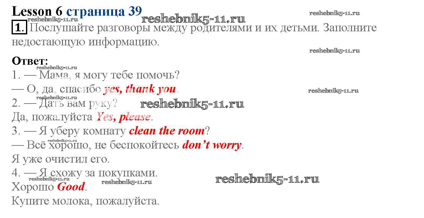 Готовая домашняя работа с ответами по Английскому языку за 6 класс Кузовлев, Лапа, Перегудова Рабочая тетрадь Просвещение 2015 ФГОС - Lesson 6 39