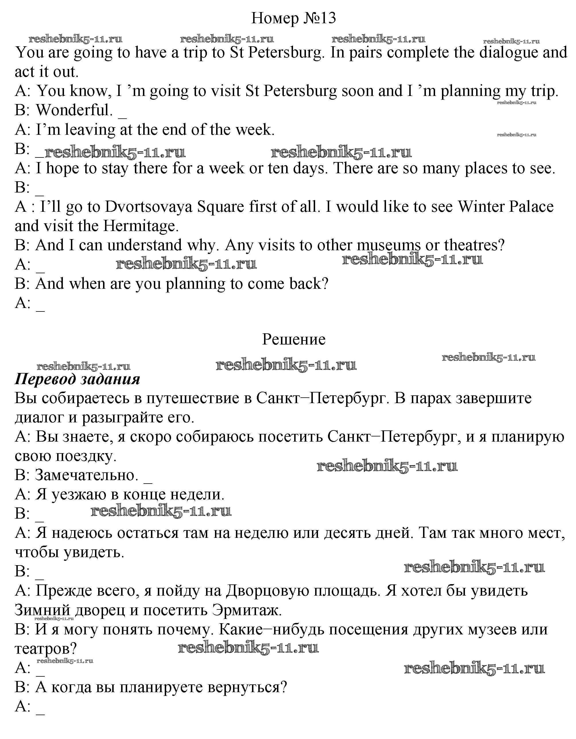 Готовая домашняя работа с ответами по Английскому языку за 6 класс Афанасьева, Михеева, Баранова Рабочая тетрадь Rainbow Дрофа 2017 ФГОС - Unit One 13
