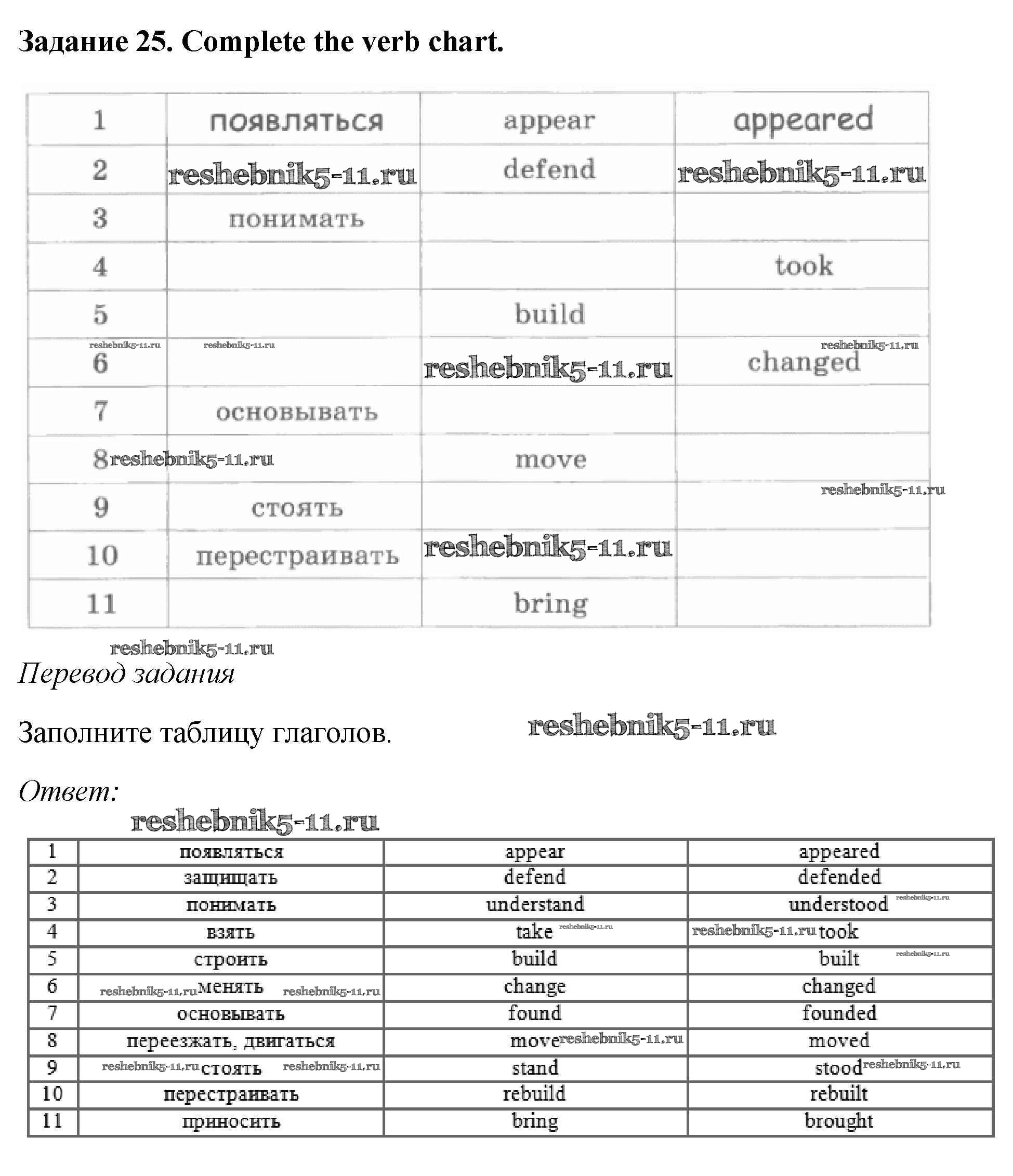 Готовая домашняя работа с ответами по Английскому языку за 6 класс Афанасьева, Михеева, Баранова Рабочая тетрадь Rainbow Дрофа 2017 ФГОС - Unit One 25
