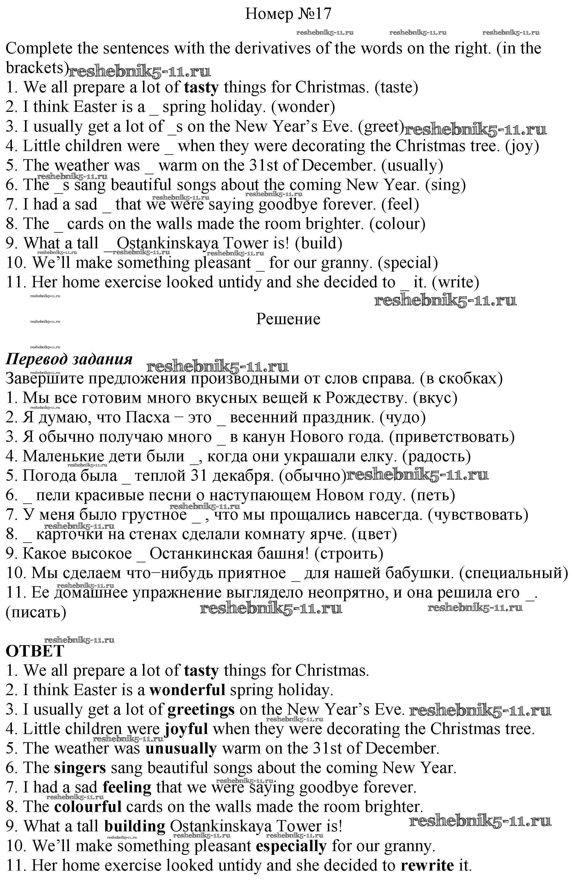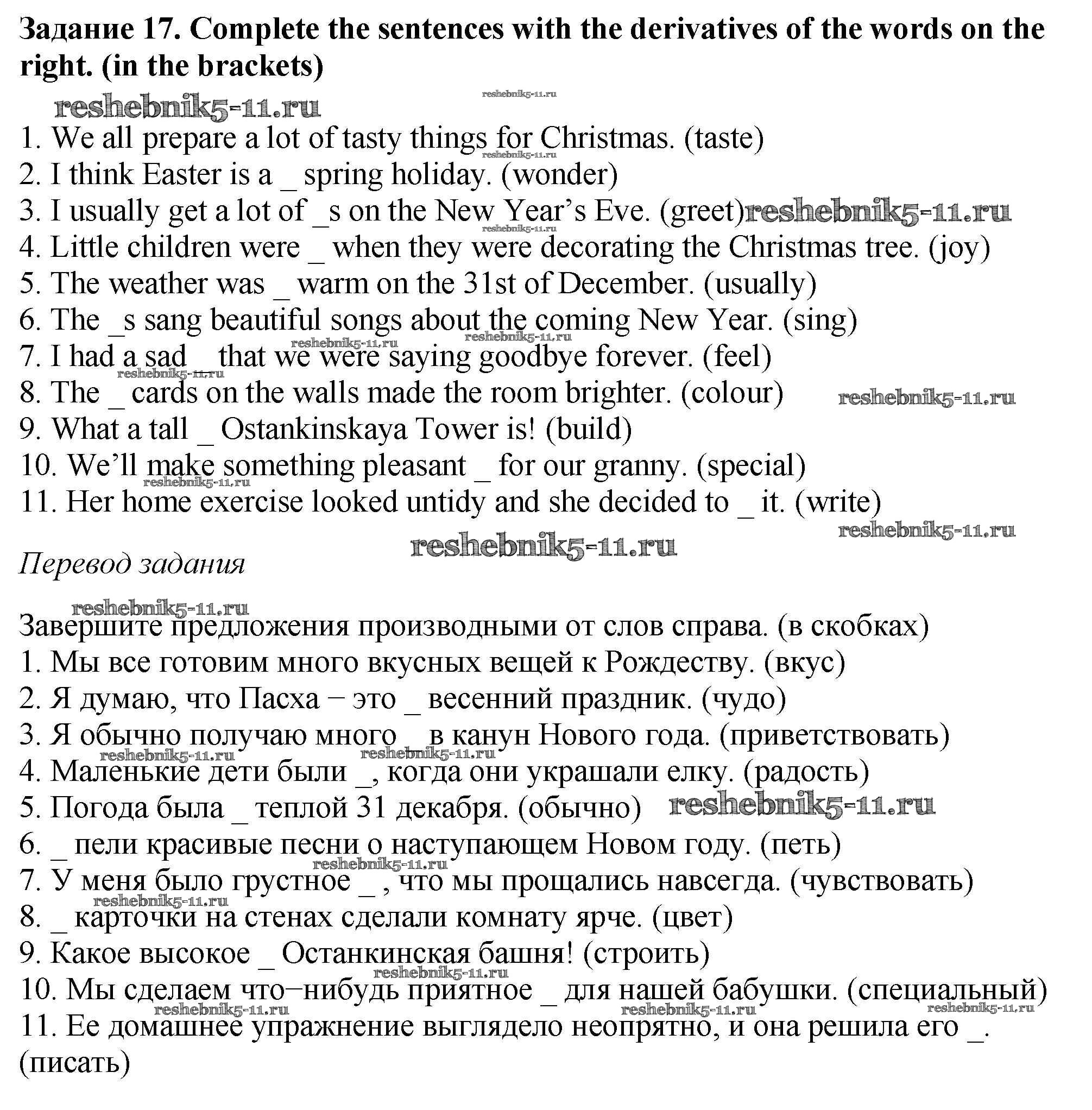 Готовая домашняя работа с ответами по Английскому языку за 6 класс Афанасьева, Михеева, Баранова Рабочая тетрадь Rainbow Дрофа 2017 ФГОС - Unit Three 17