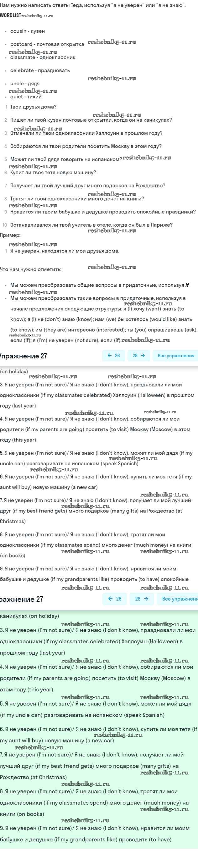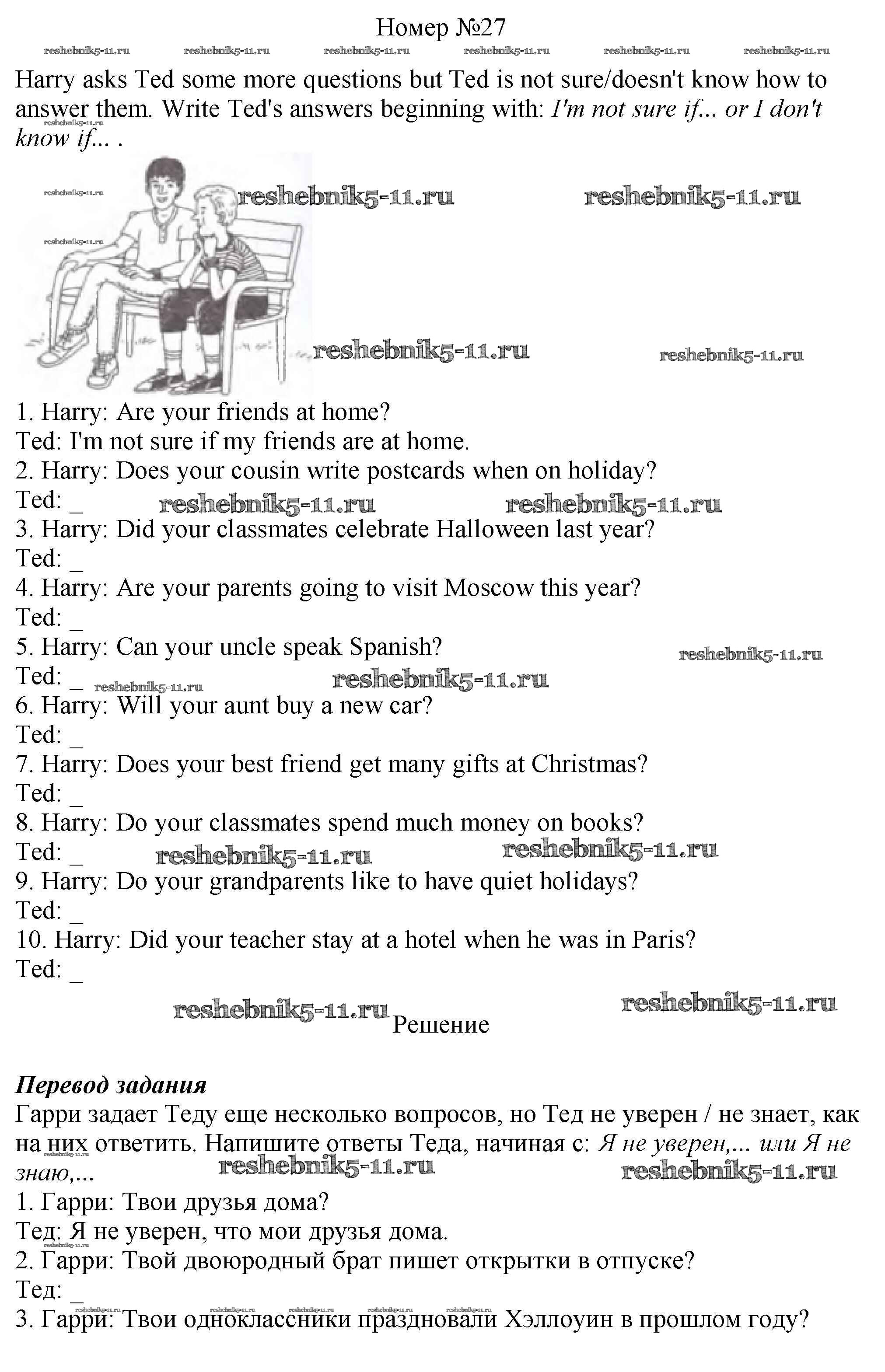 Готовая домашняя работа с ответами по Английскому языку за 6 класс Афанасьева, Михеева, Баранова Рабочая тетрадь Rainbow Дрофа 2017 ФГОС - Unit Three 27