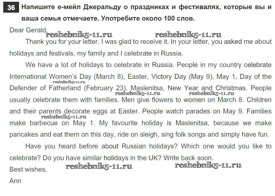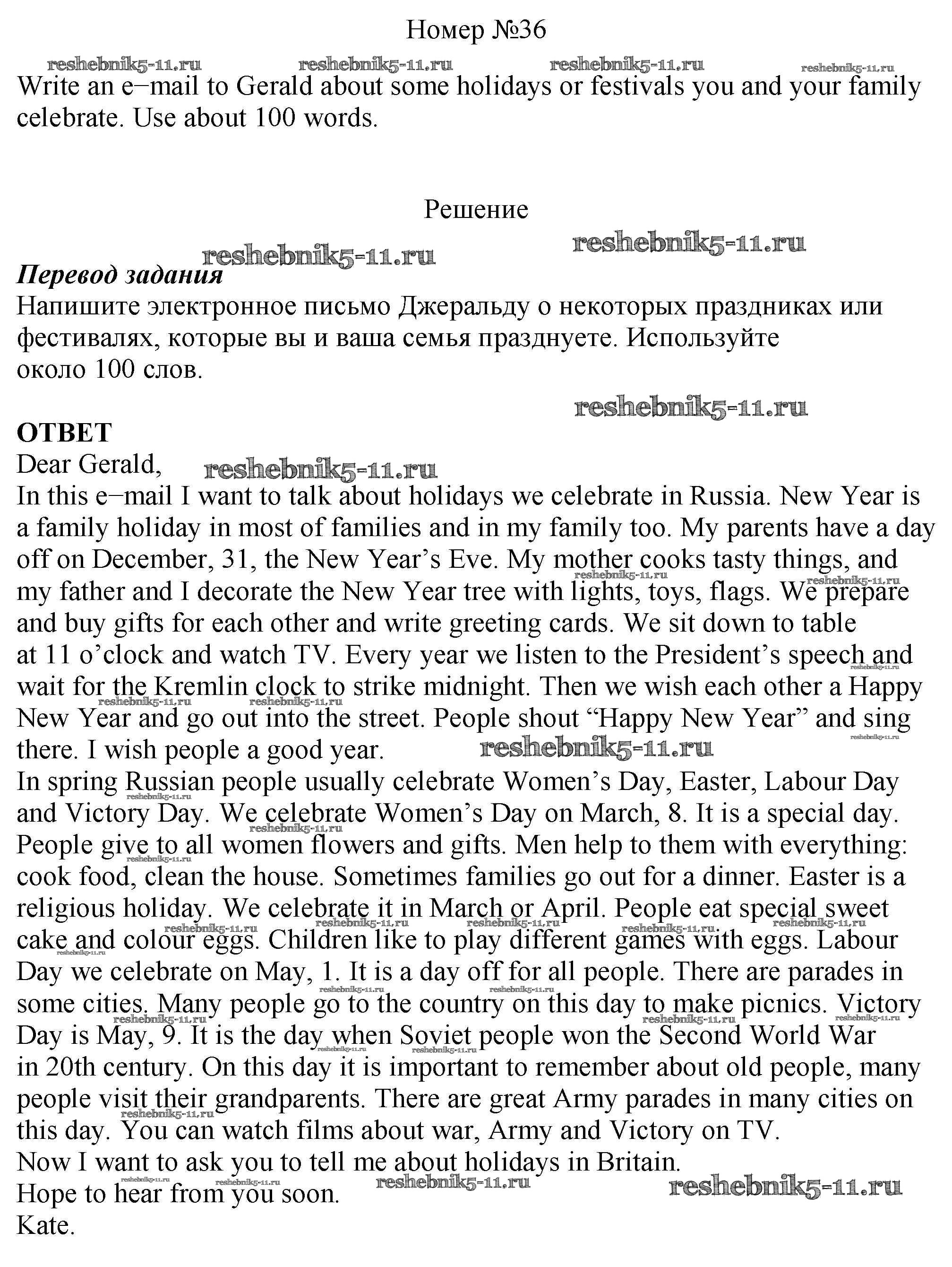 Готовая домашняя работа с ответами по Английскому языку за 6 класс Афанасьева, Михеева, Баранова Рабочая тетрадь Rainbow Дрофа 2017 ФГОС - Unit Three 36