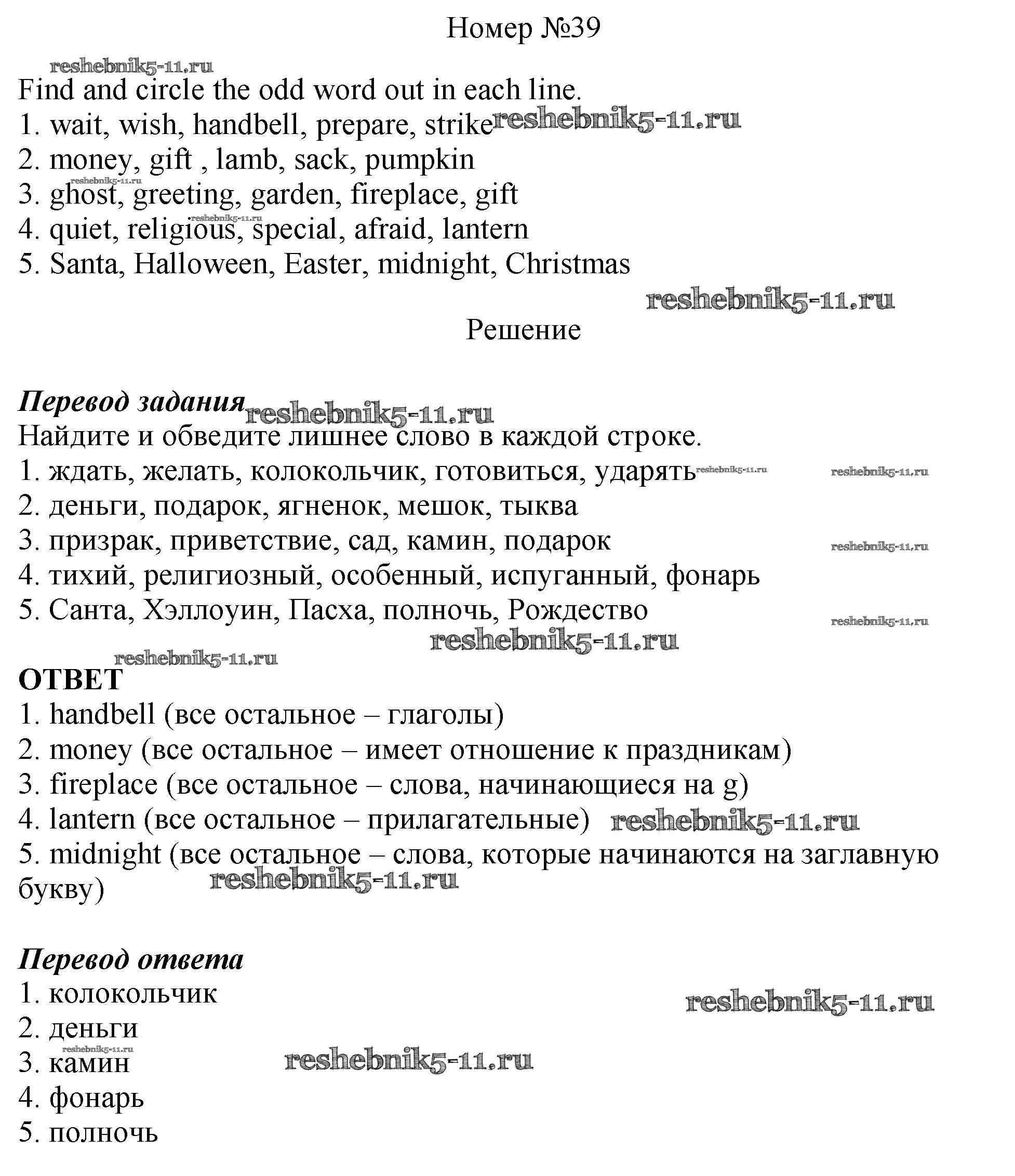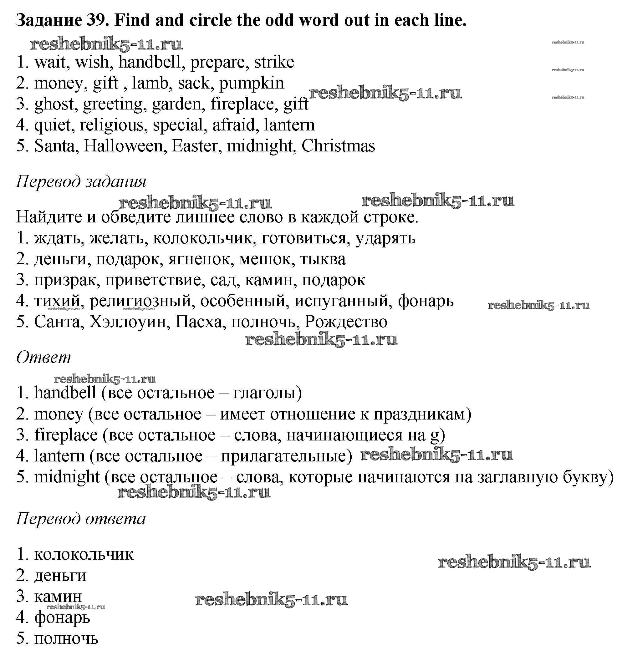 Готовая домашняя работа с ответами по Английскому языку за 6 класс Афанасьева, Михеева, Баранова Рабочая тетрадь Rainbow Дрофа 2017 ФГОС - Unit Three 39