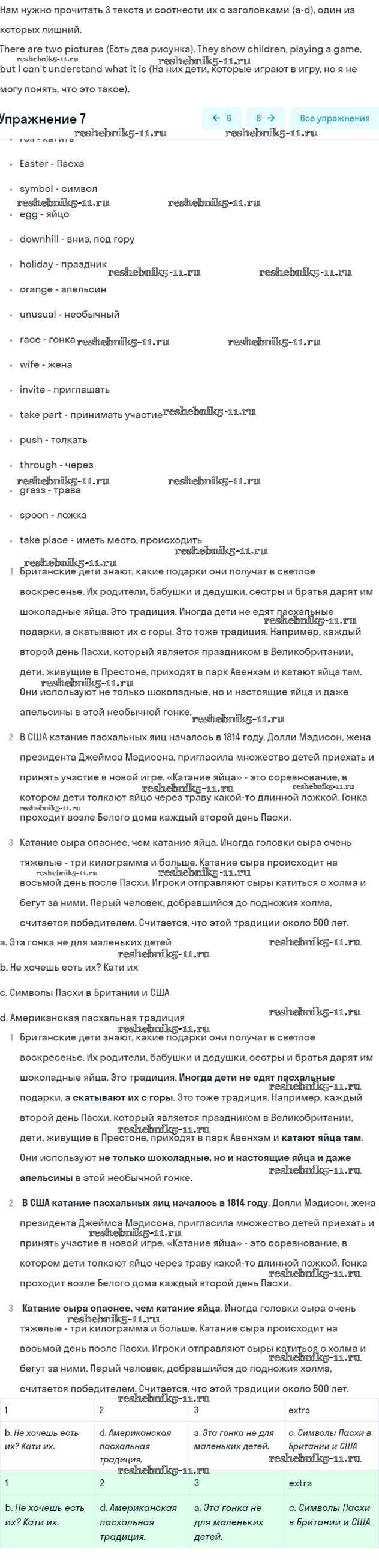 Готовая домашняя работа с ответами по Английскому языку за 6 класс Афанасьева, Михеева, Баранова Рабочая тетрадь Rainbow Дрофа 2017 ФГОС - Unit Three 7