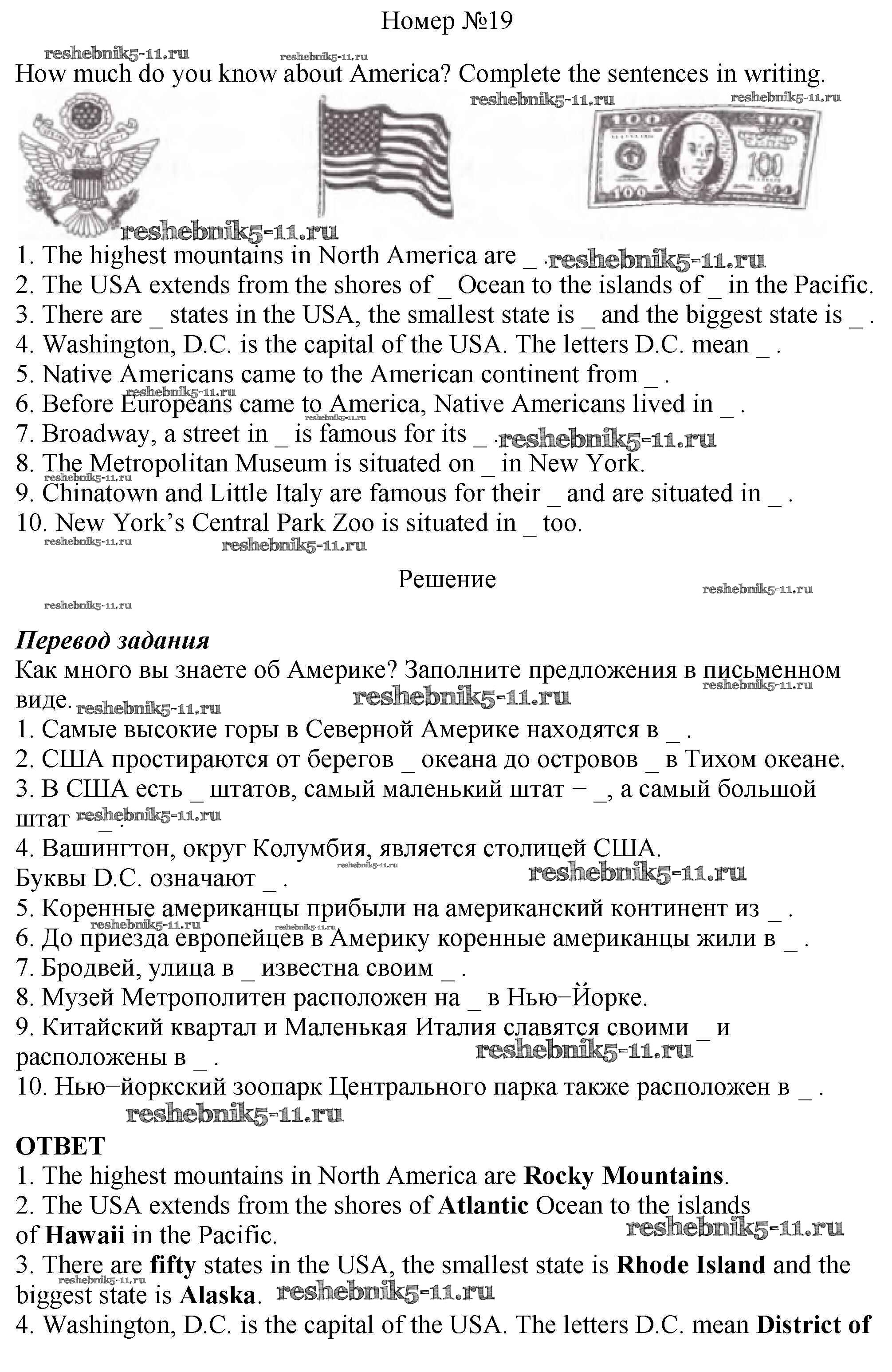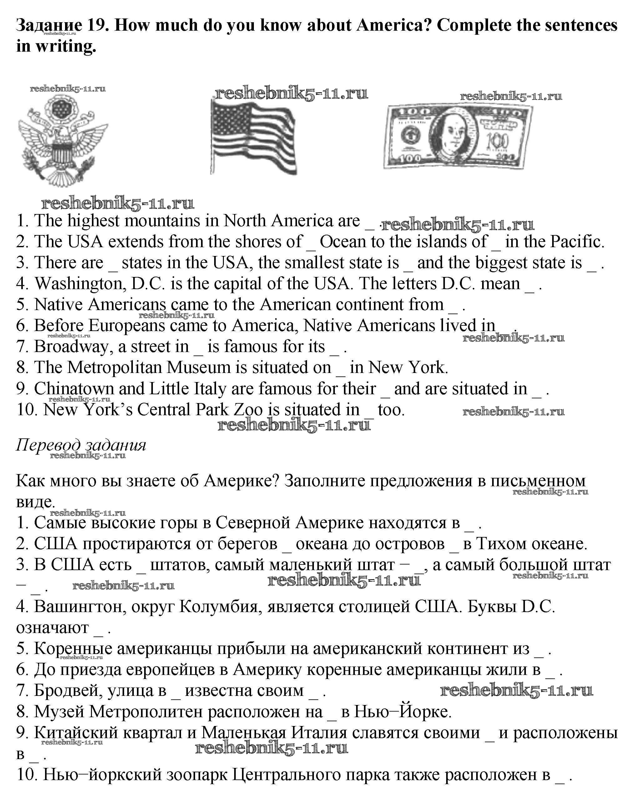 Готовая домашняя работа с ответами по Английскому языку за 6 класс Афанасьева, Михеева, Баранова Рабочая тетрадь Rainbow Дрофа 2017 ФГОС - Unit Four 19