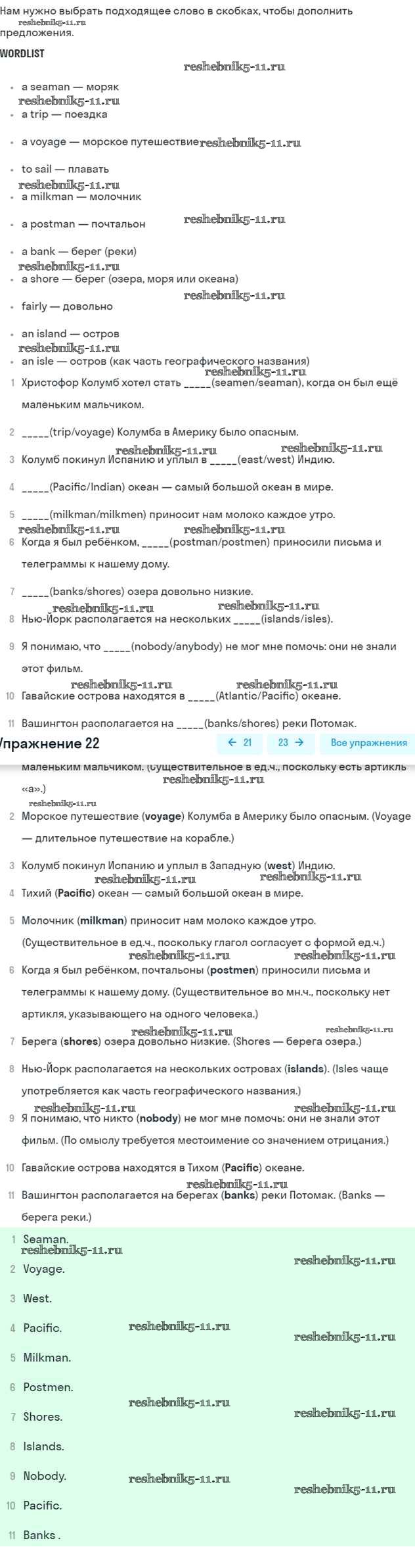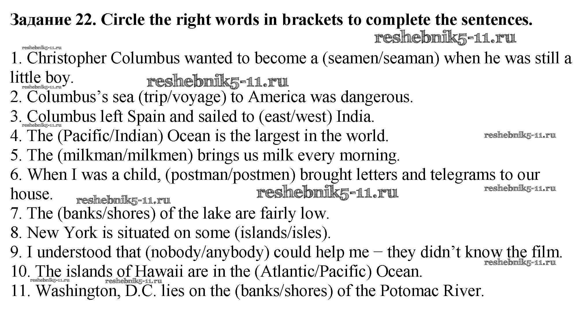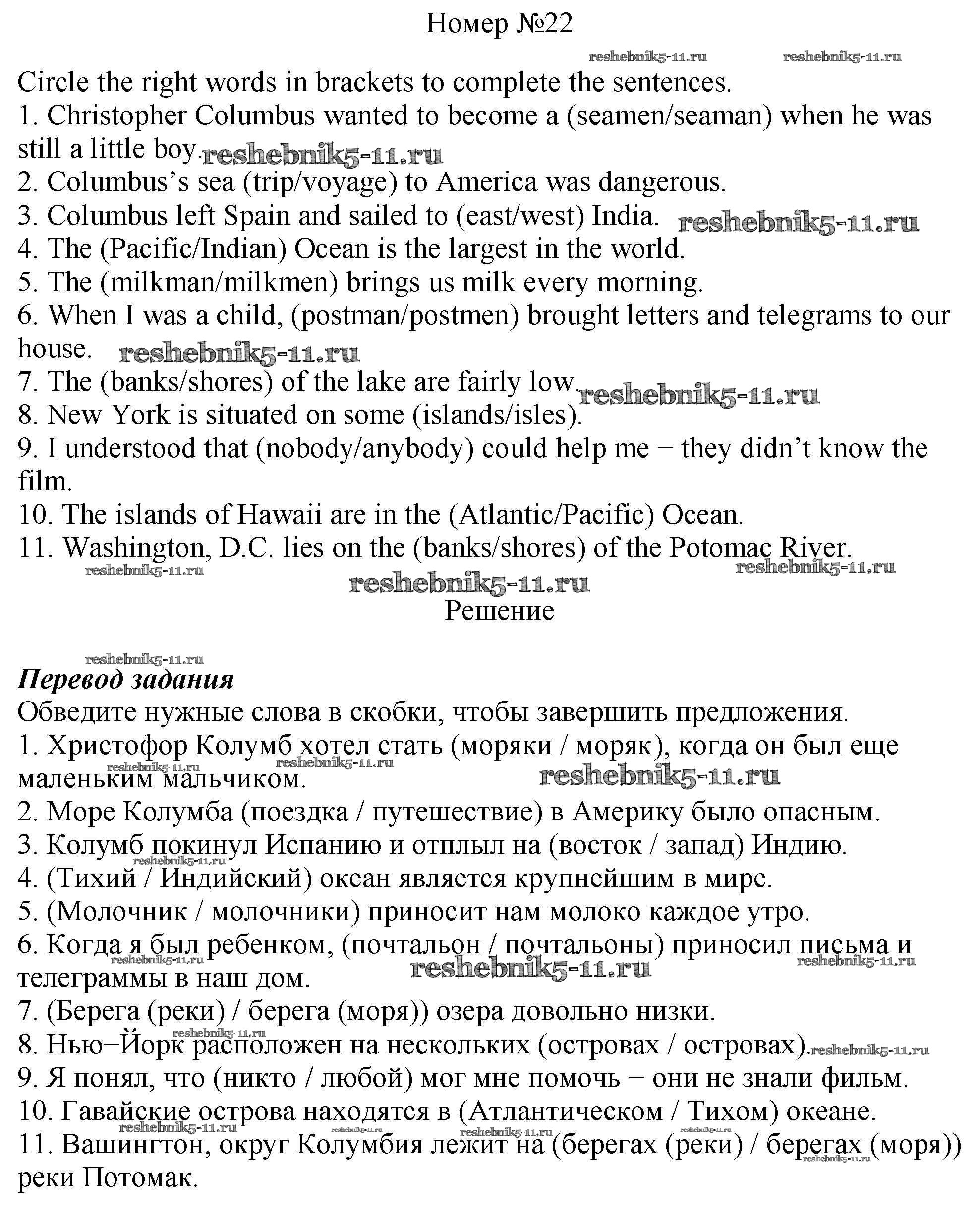 Готовая домашняя работа с ответами по Английскому языку за 6 класс Афанасьева, Михеева, Баранова Рабочая тетрадь Rainbow Дрофа 2017 ФГОС - Unit Four 22