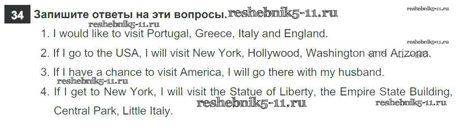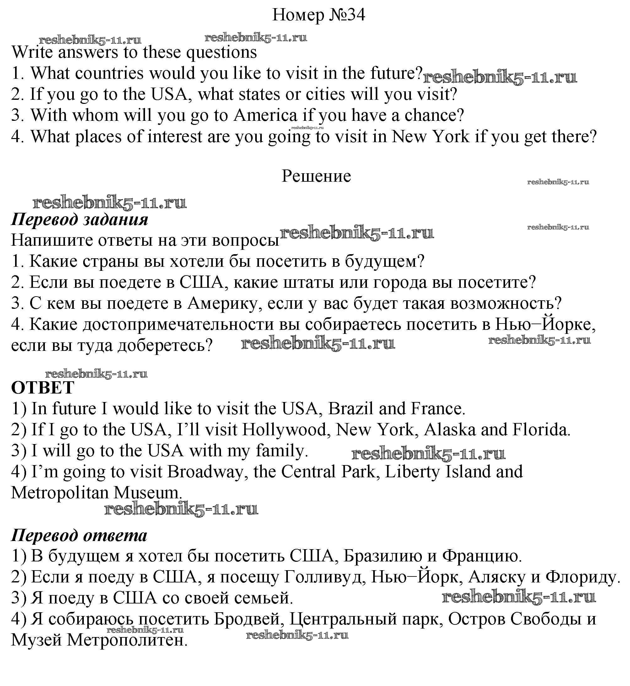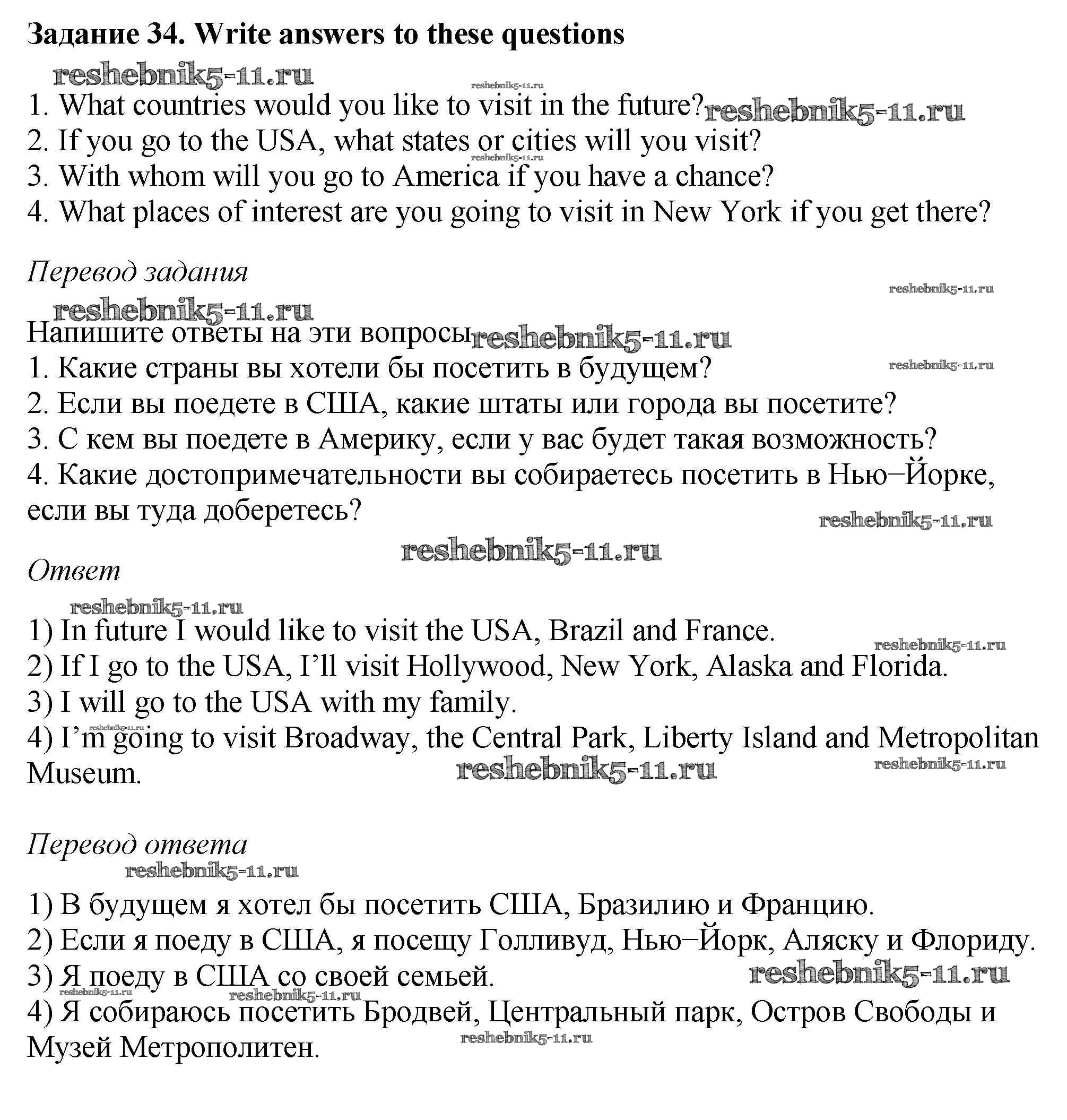 Готовая домашняя работа с ответами по Английскому языку за 6 класс Афанасьева, Михеева, Баранова Рабочая тетрадь Rainbow Дрофа 2017 ФГОС - Unit Four 34