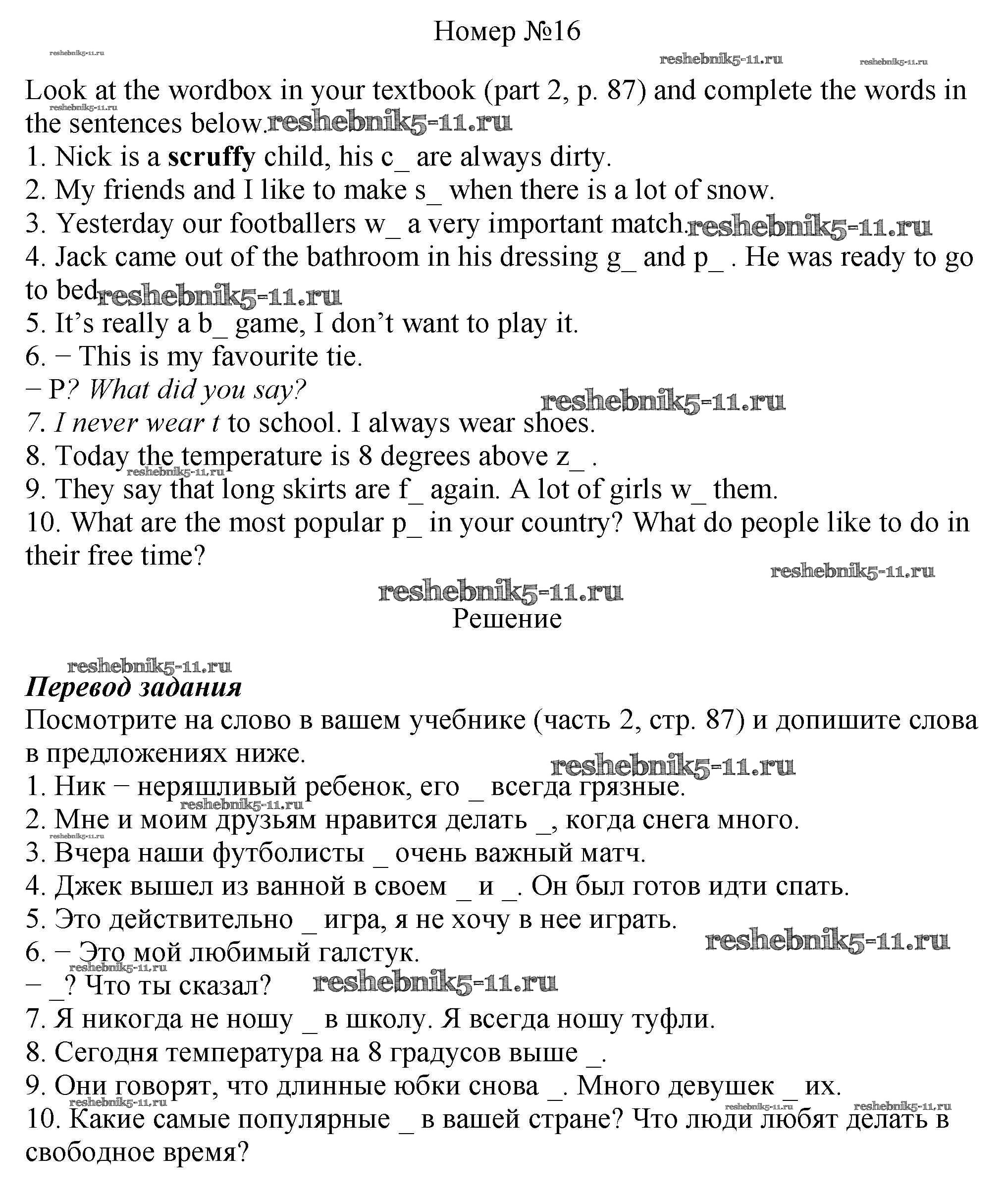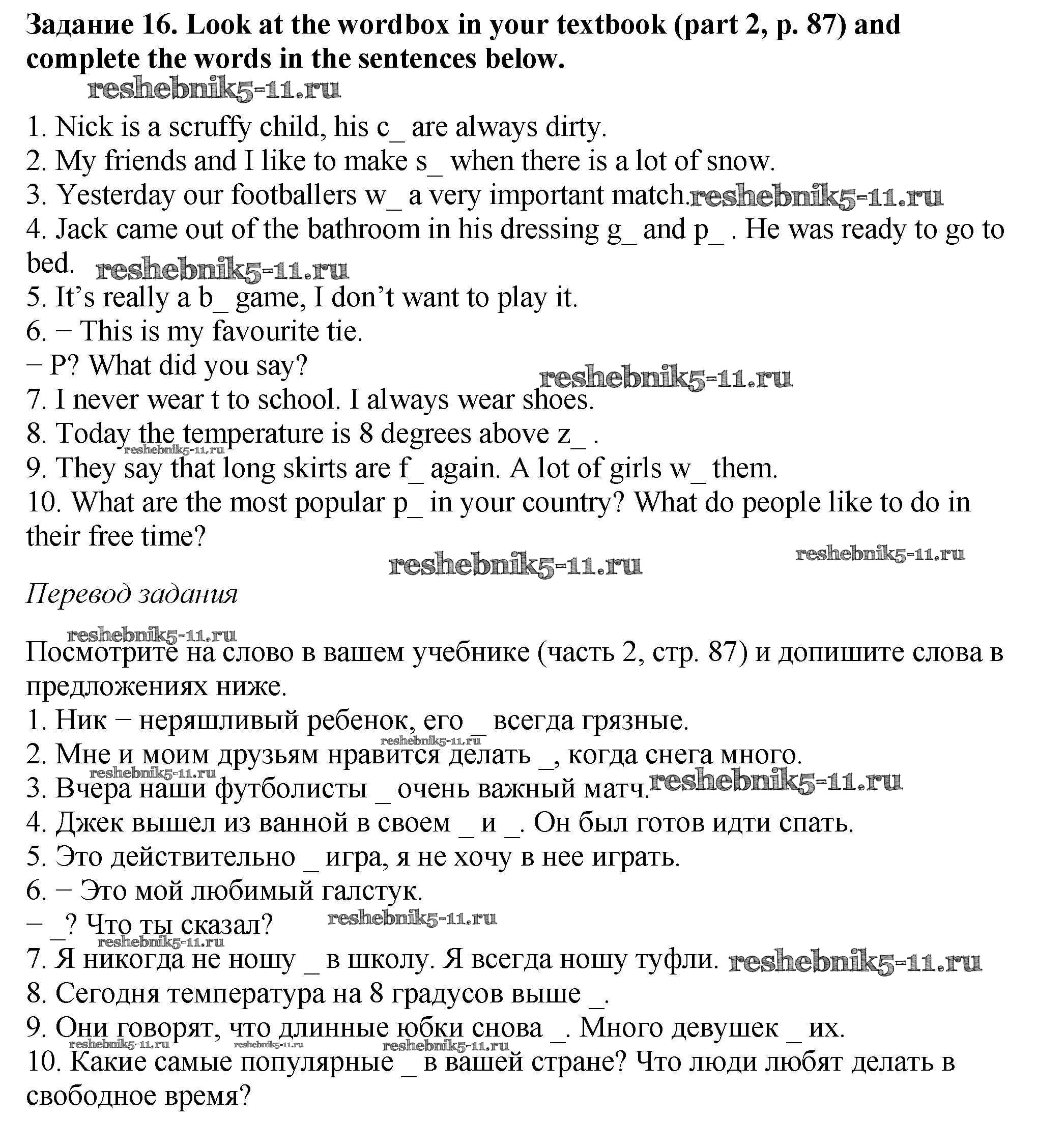 Готовая домашняя работа с ответами по Английскому языку за 6 класс Афанасьева, Михеева, Баранова Рабочая тетрадь Rainbow Дрофа 2017 ФГОС - Unit Five 16