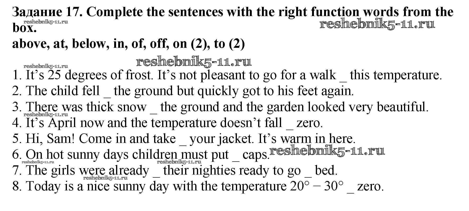 Готовая домашняя работа с ответами по Английскому языку за 6 класс Афанасьева, Михеева, Баранова Рабочая тетрадь Rainbow Дрофа 2017 ФГОС - Unit Five 17