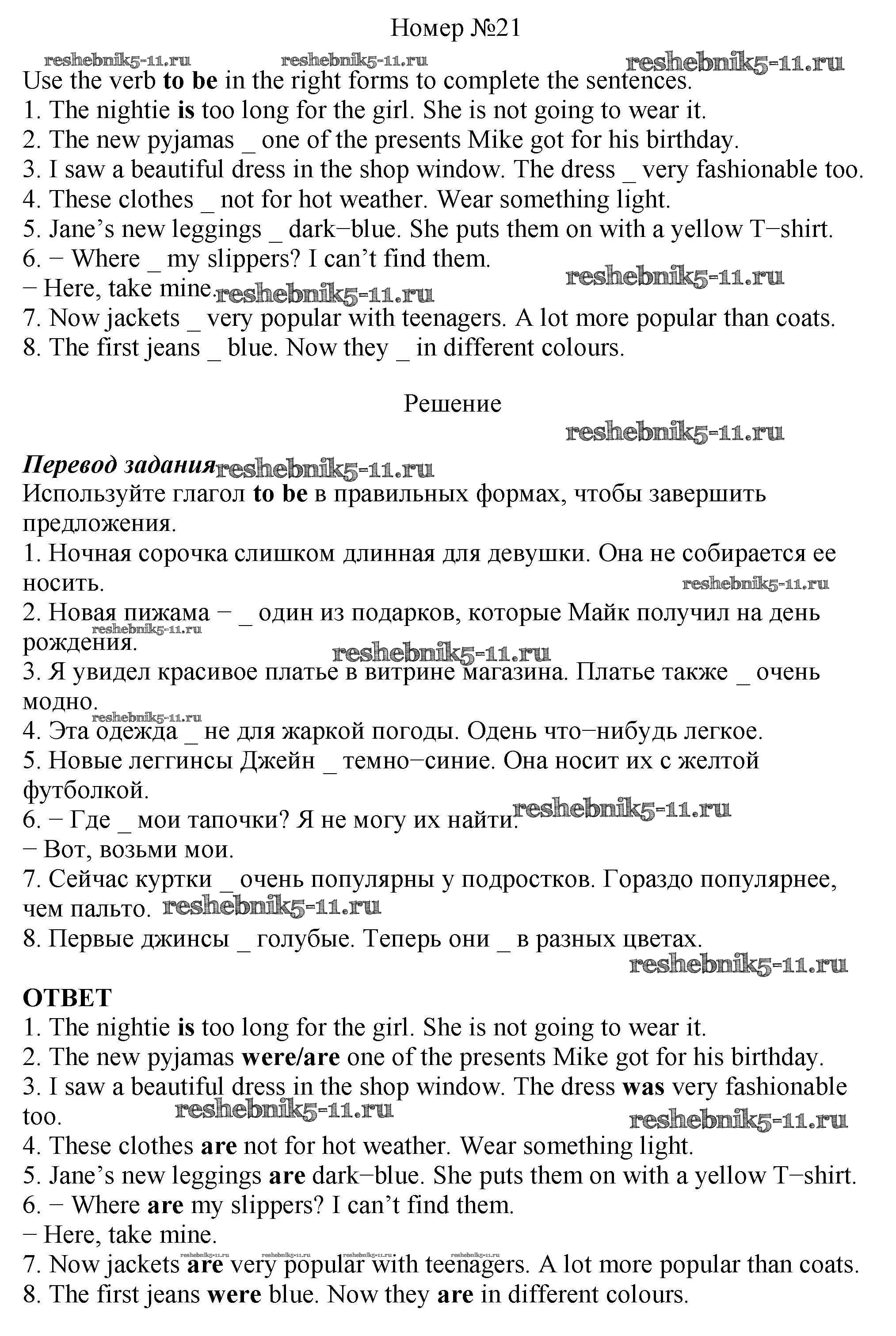 Готовая домашняя работа с ответами по Английскому языку за 6 класс Афанасьева, Михеева, Баранова Рабочая тетрадь Rainbow Дрофа 2017 ФГОС - Unit Five 21