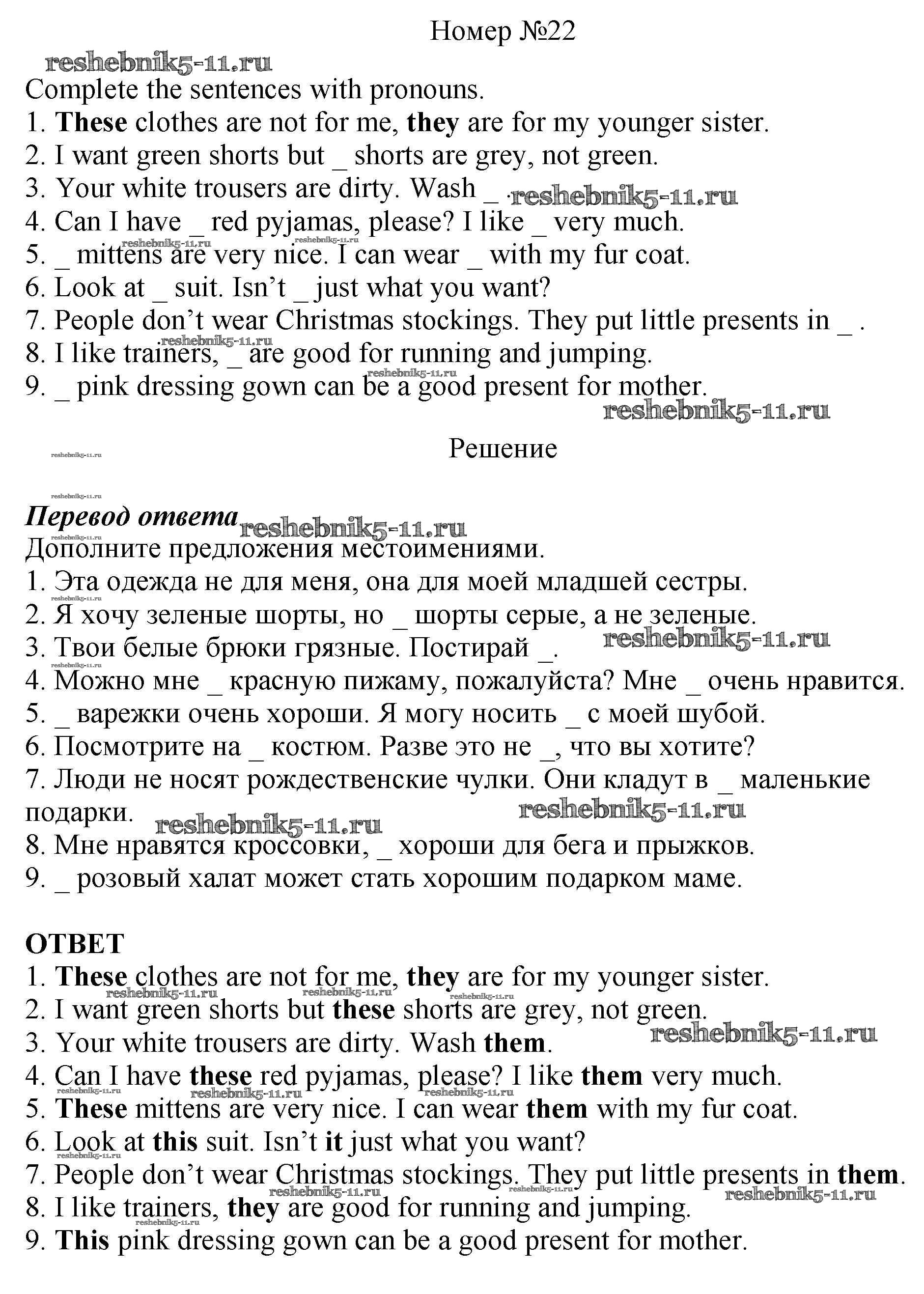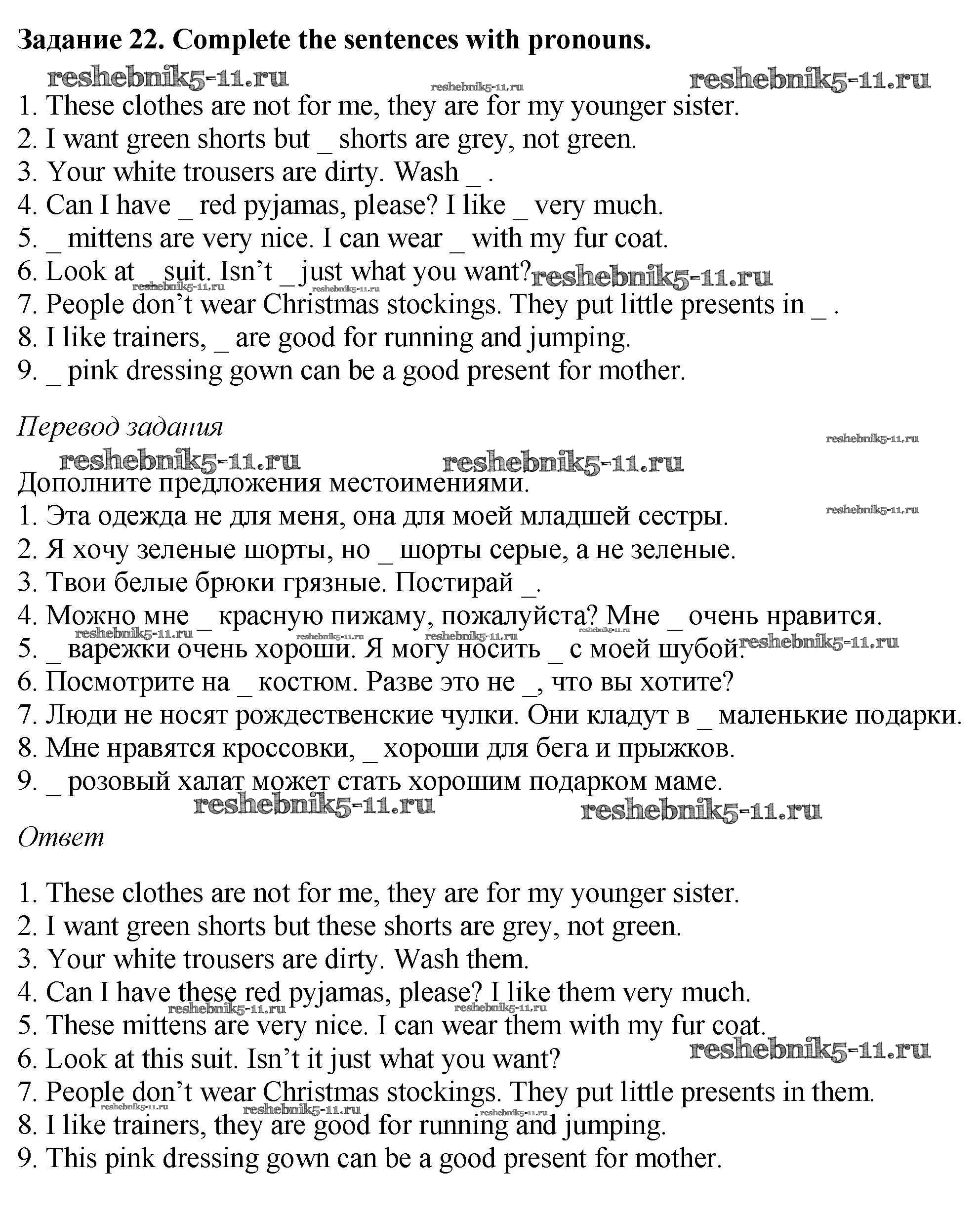 Готовая домашняя работа с ответами по Английскому языку за 6 класс Афанасьева, Михеева, Баранова Рабочая тетрадь Rainbow Дрофа 2017 ФГОС - Unit Five 22