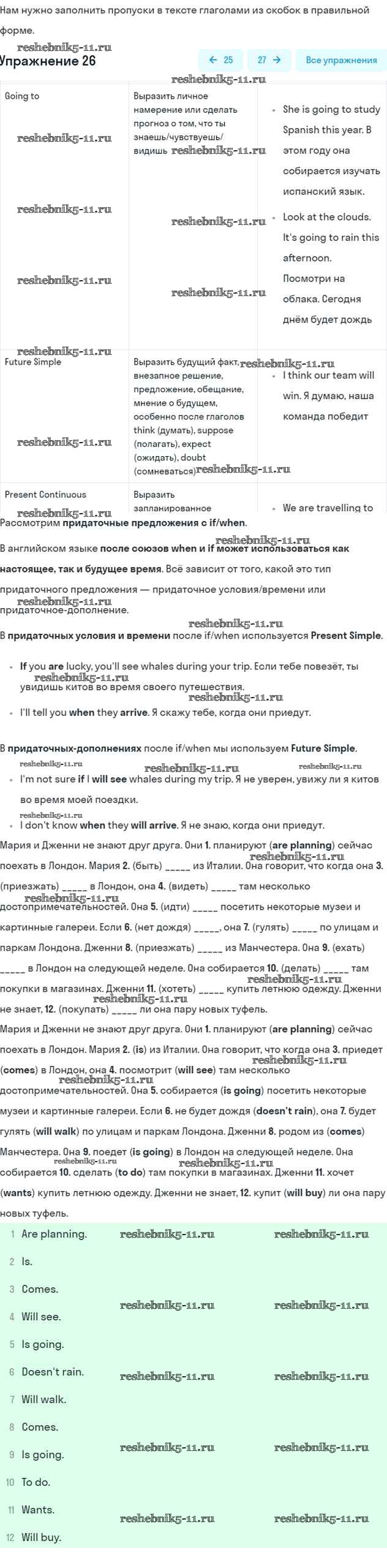 Готовая домашняя работа с ответами по Английскому языку за 6 класс Афанасьева, Михеева, Баранова Рабочая тетрадь Rainbow Дрофа 2017 ФГОС - Unit Five 26