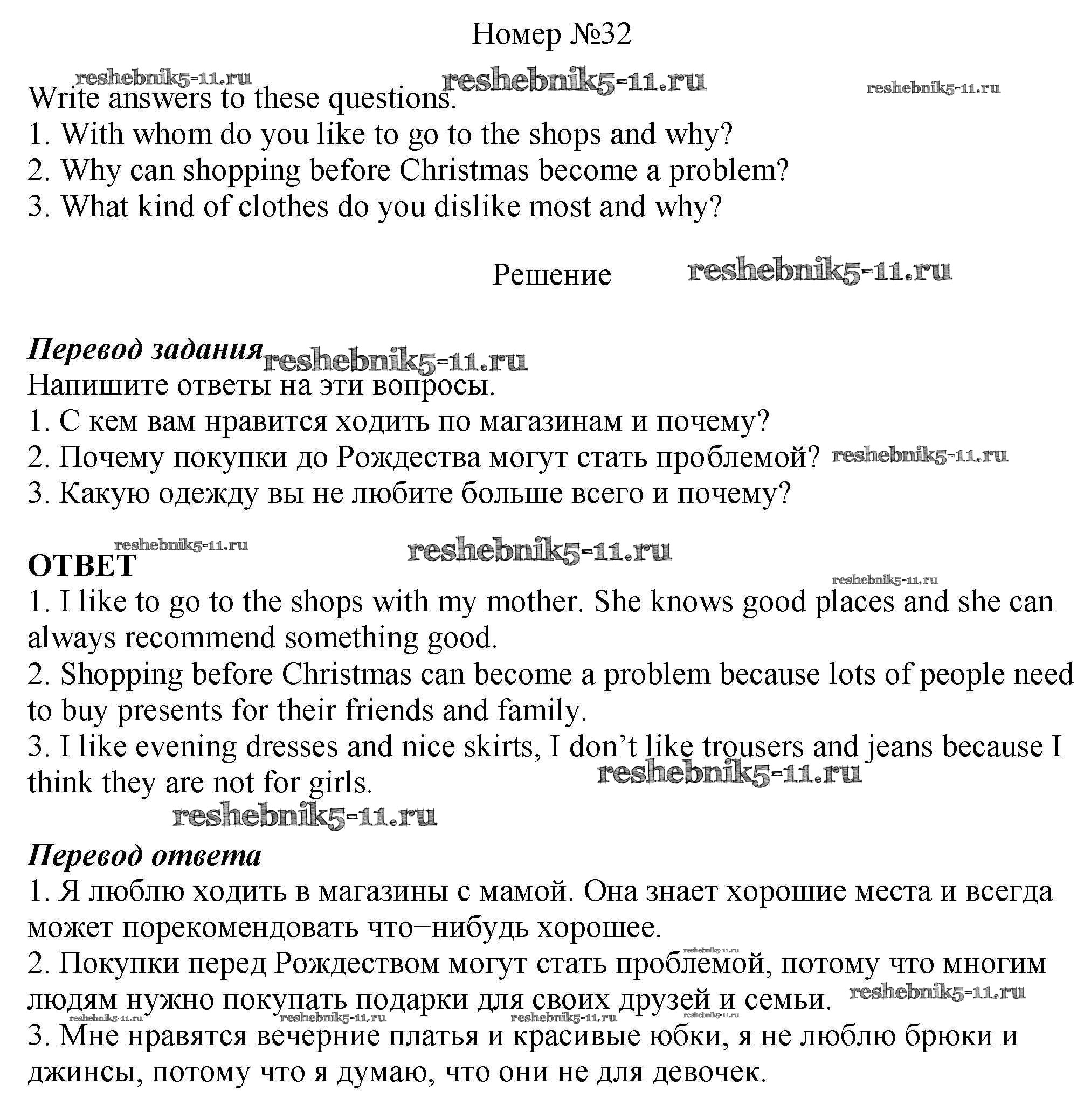 Готовая домашняя работа с ответами по Английскому языку за 6 класс Афанасьева, Михеева, Баранова Рабочая тетрадь Rainbow Дрофа 2017 ФГОС - Unit Five 32