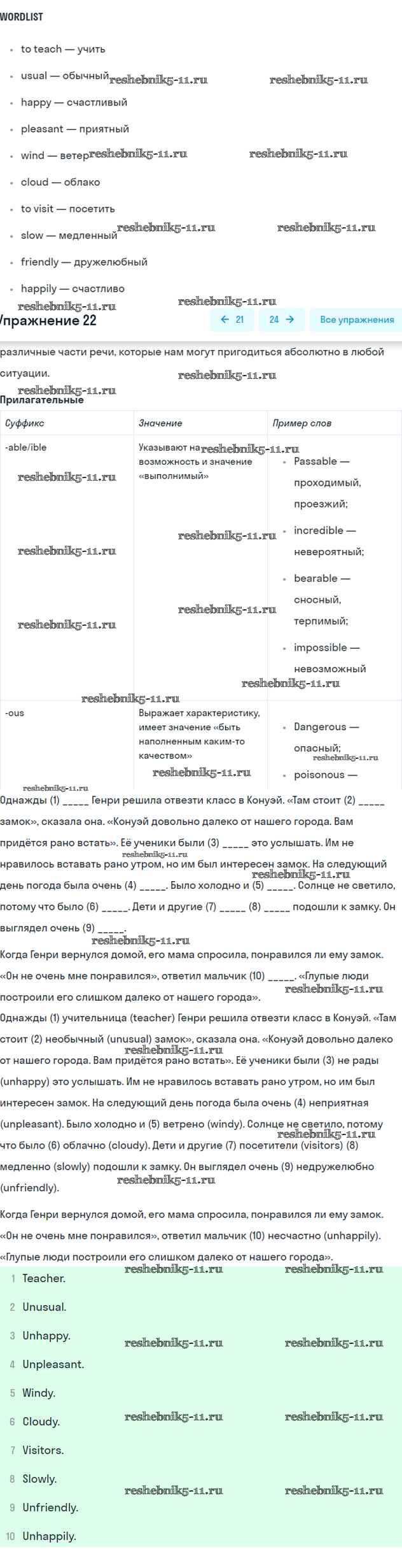 Готовая домашняя работа с ответами по Английскому языку за 6 класс Афанасьева, Михеева, Баранова Рабочая тетрадь Rainbow Дрофа 2017 ФГОС - Unit Six 22