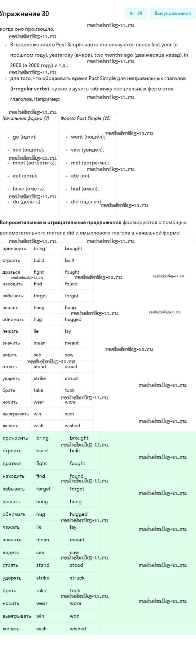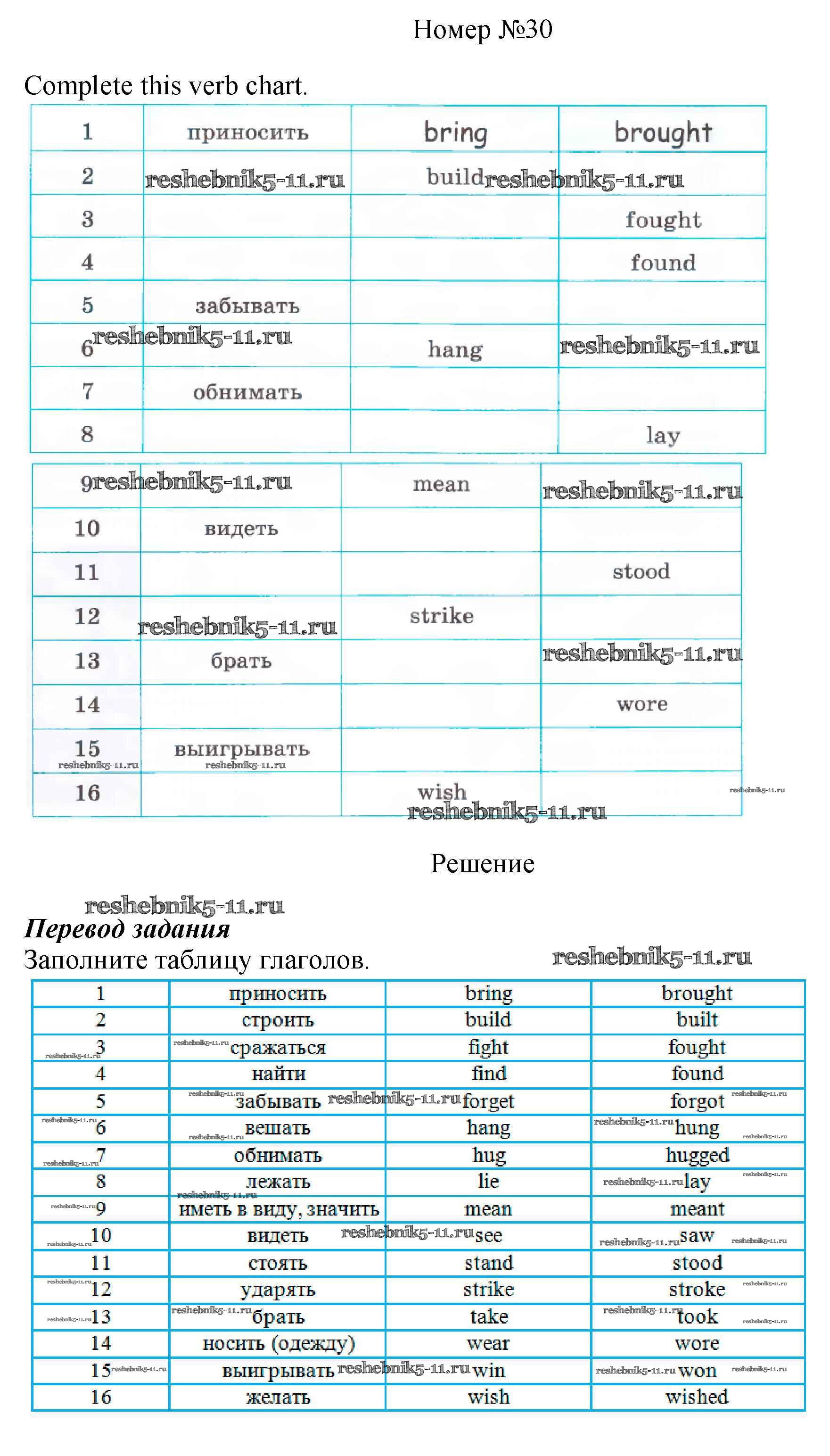 Готовая домашняя работа с ответами по Английскому языку за 6 класс Афанасьева, Михеева, Баранова Рабочая тетрадь Rainbow Дрофа 2017 ФГОС - Unit Six 30