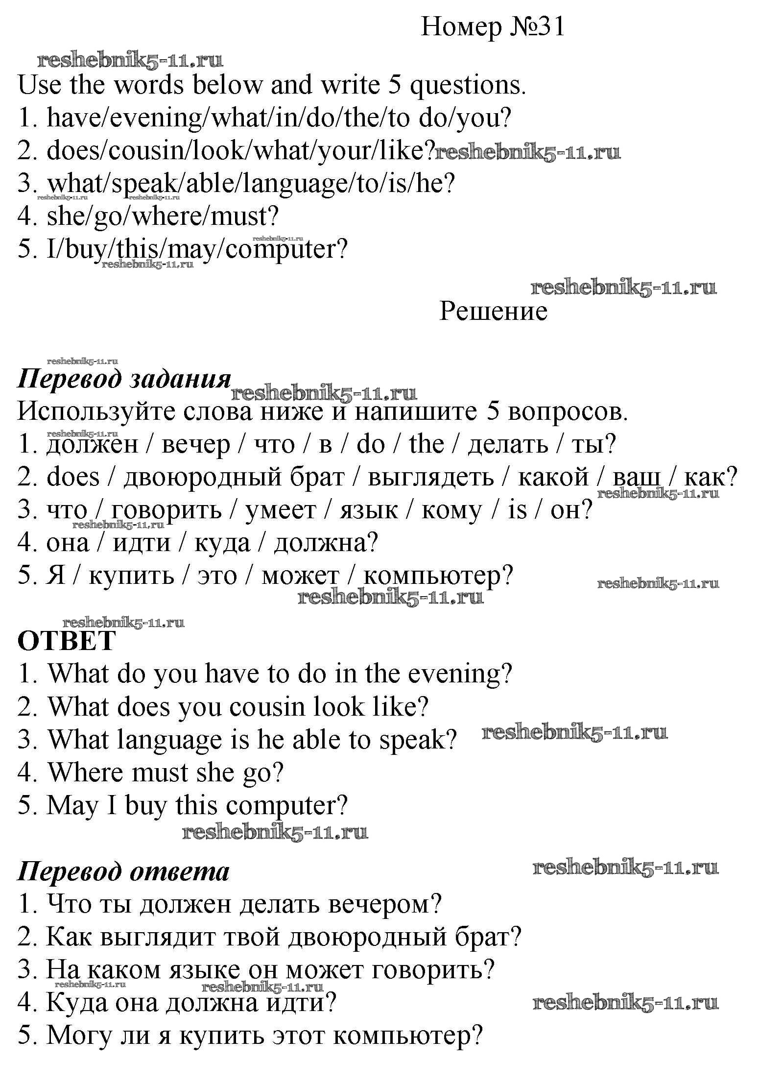 Решебник №2 / unit six / 31