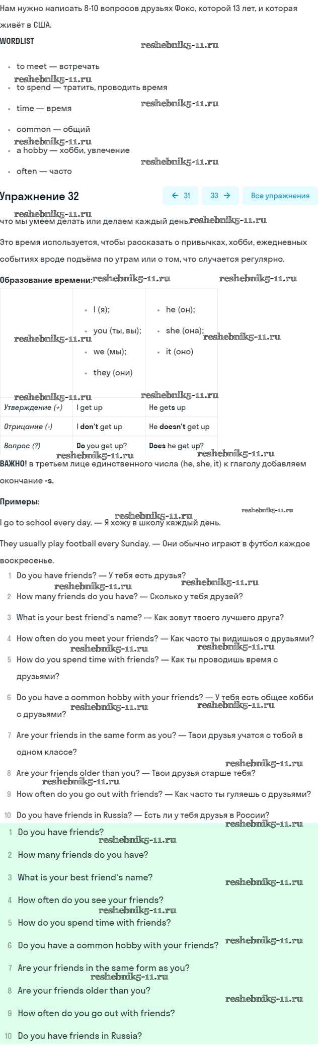 Решебник №2 / unit six / 32