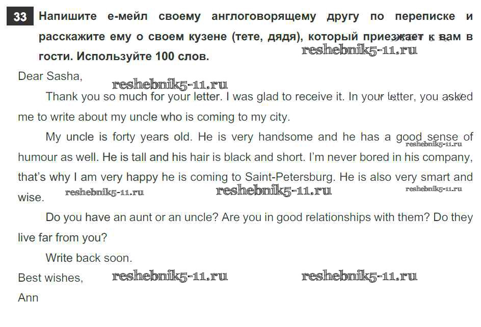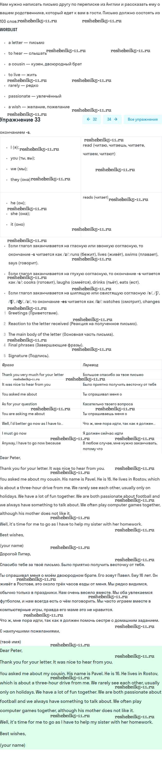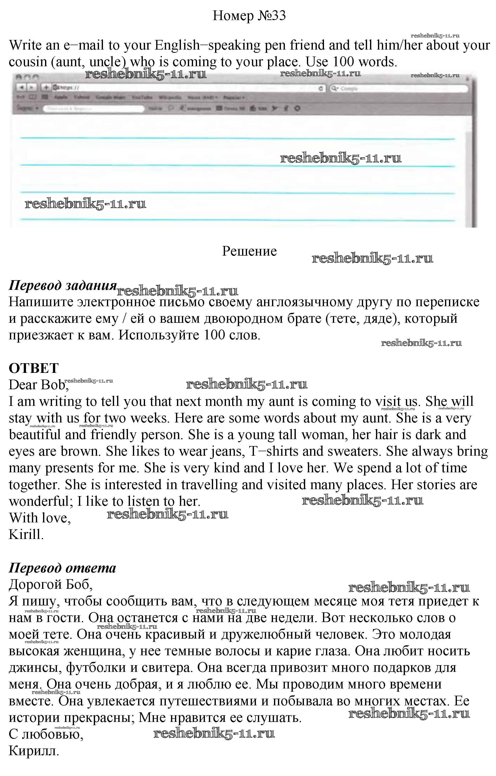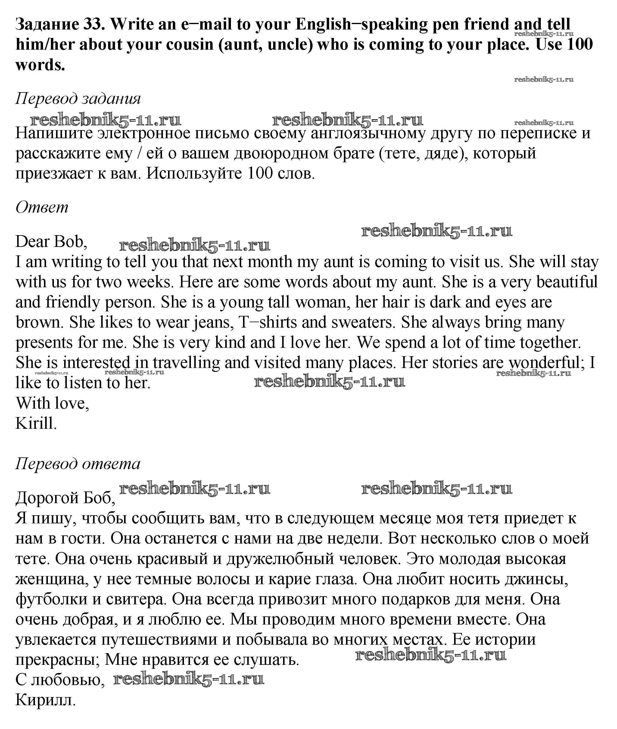 Готовая домашняя работа с ответами по Английскому языку за 6 класс Афанасьева, Михеева, Баранова Рабочая тетрадь Rainbow Дрофа 2017 ФГОС - Unit Six 33