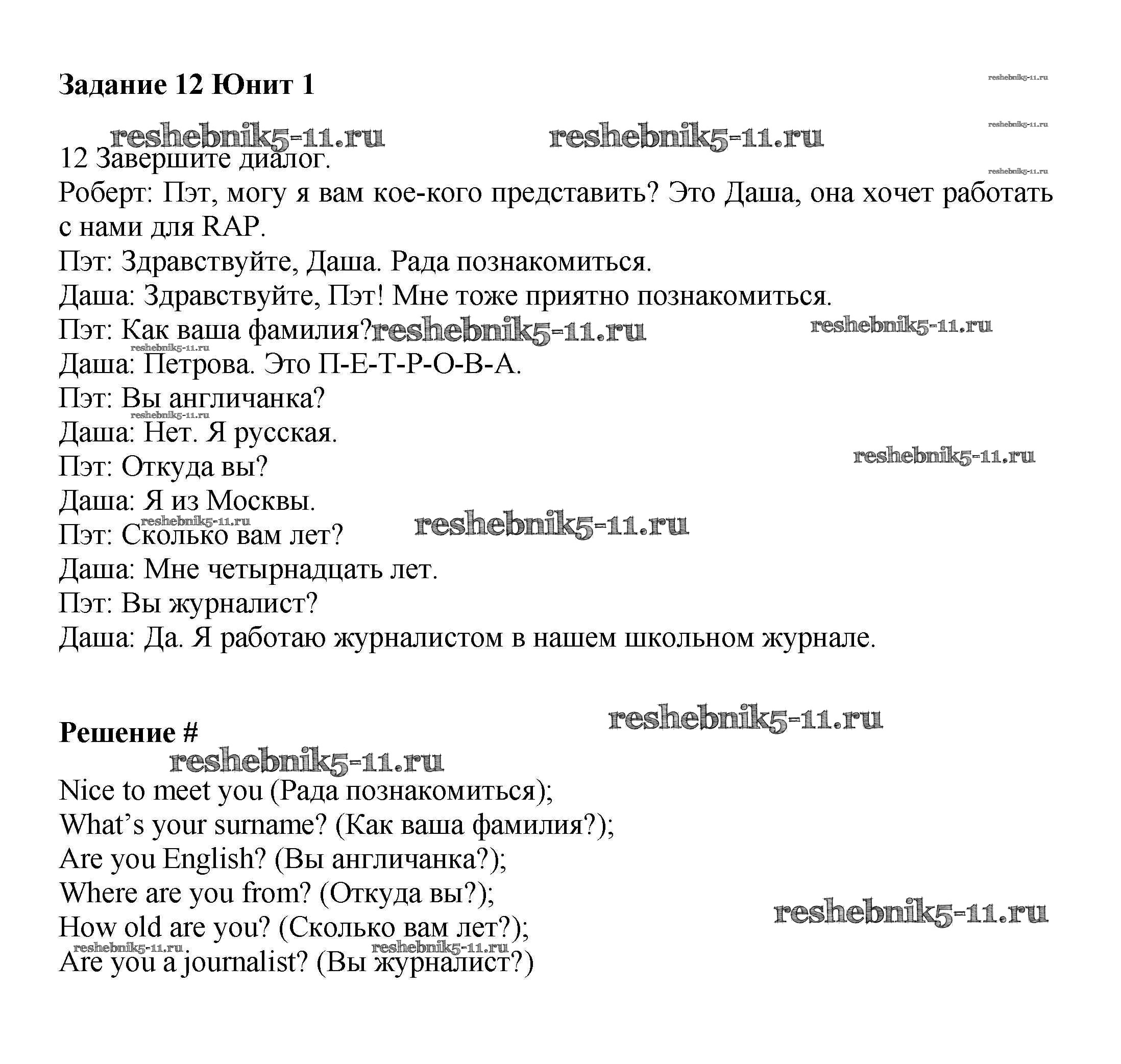 Готовая домашняя работа с ответами по Английскому языку за 6 класс Вербицкая, Гаярделли, Редли, Савчук Учебник Forward Часть 1, 2 Вентана-граф 2017 ФГОС - Unit 1. Greetings and introductions 12