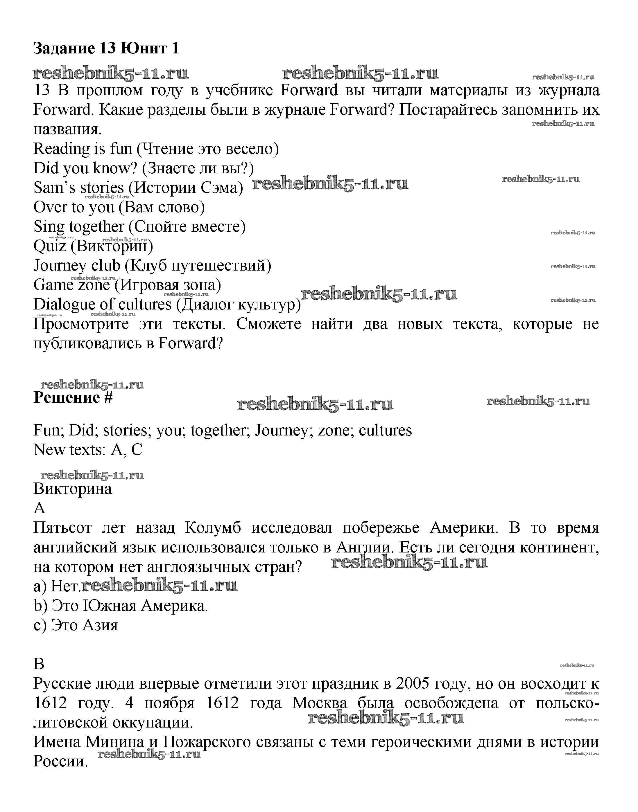 Английский язык за 6 класс Вербицкая Учебник Forward Вентана-граф unit 1 13